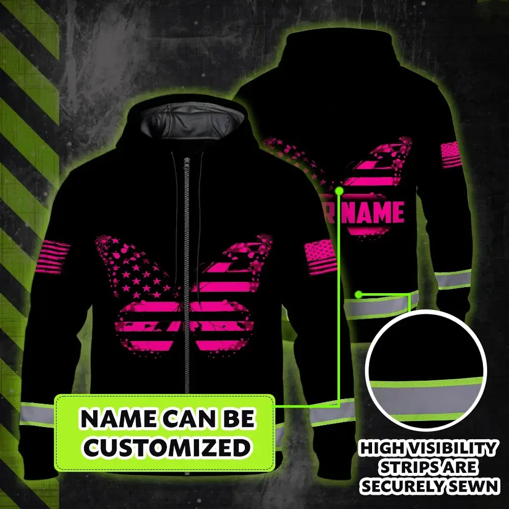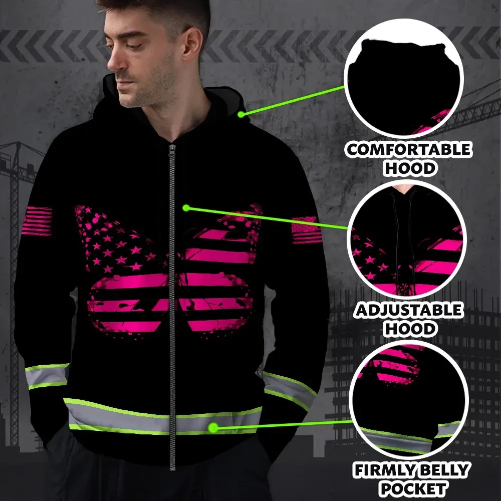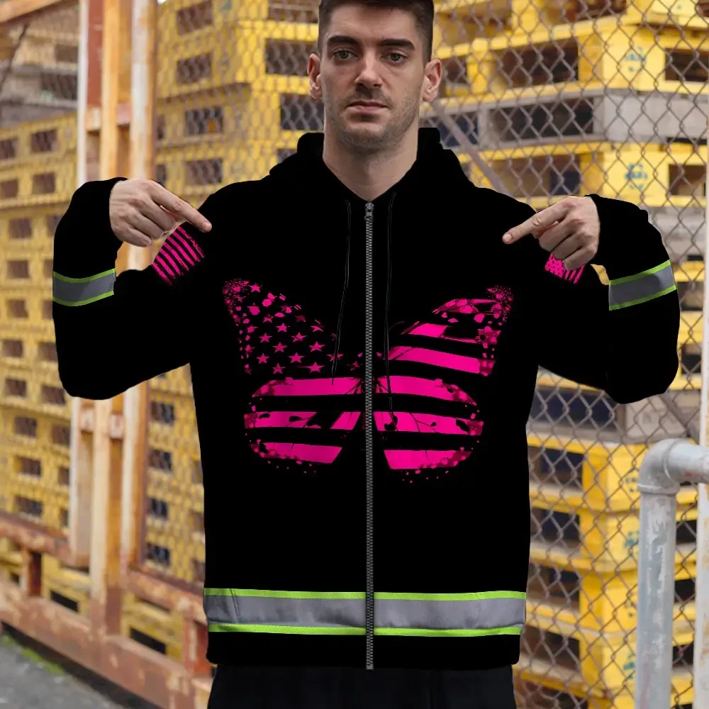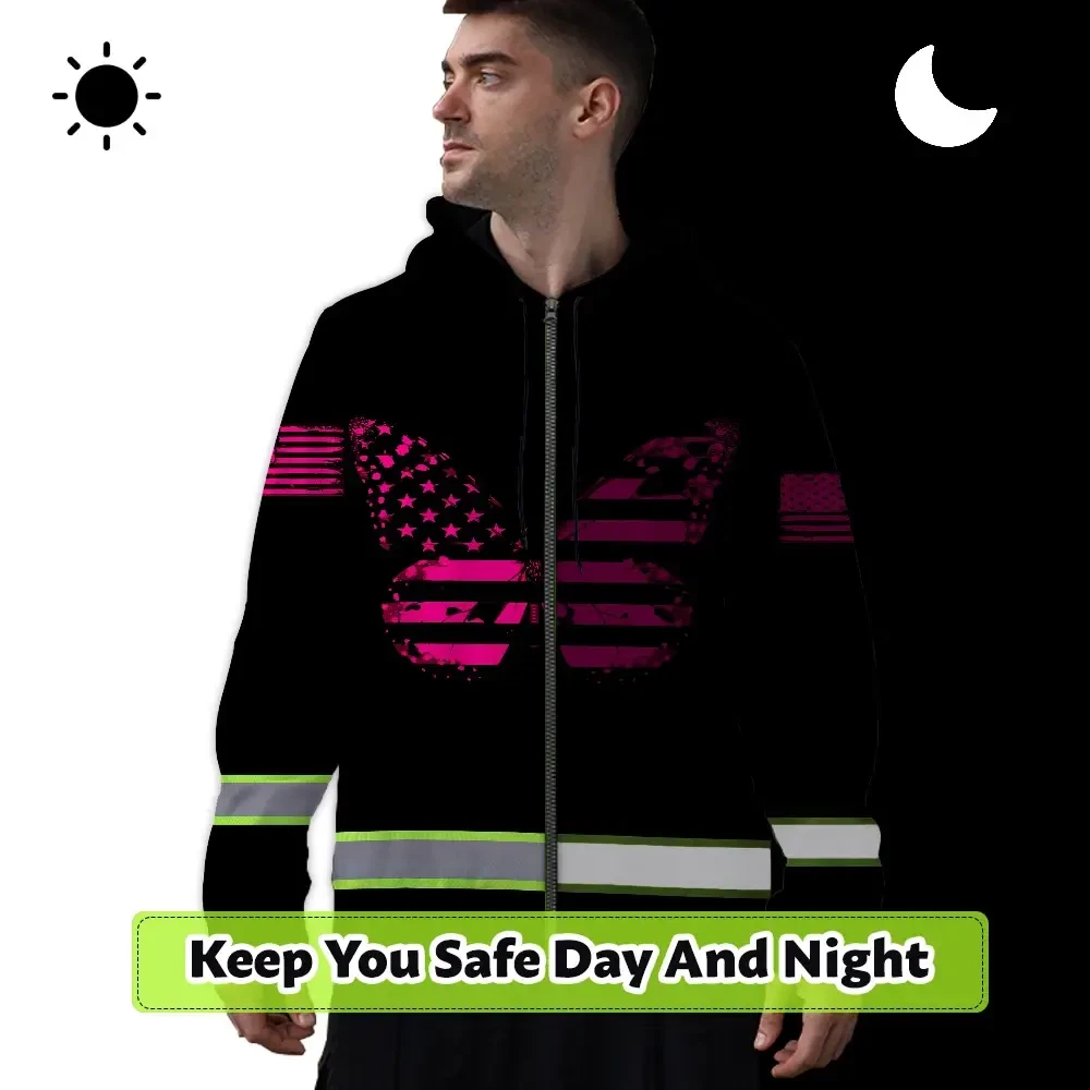 Hi Vis Zip Hoodie Reflective Pink Buttlerfly Neon Safety For Woman