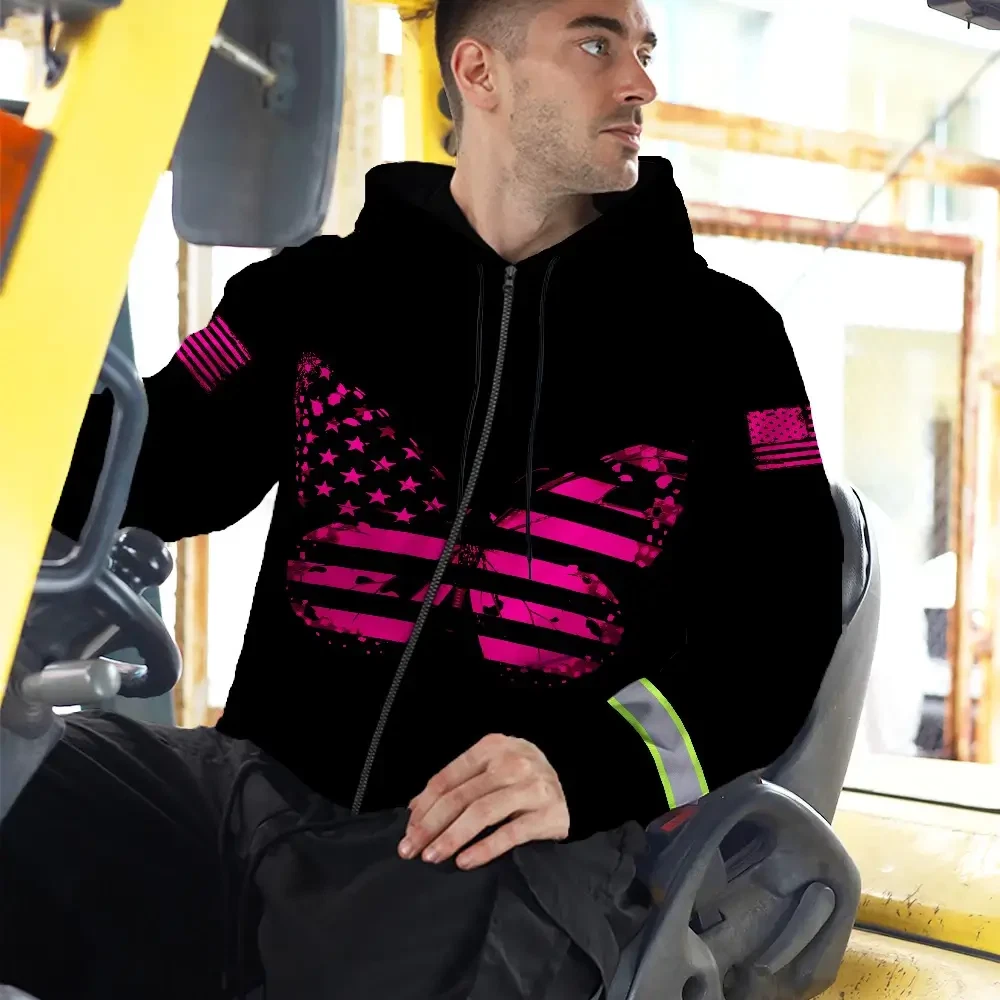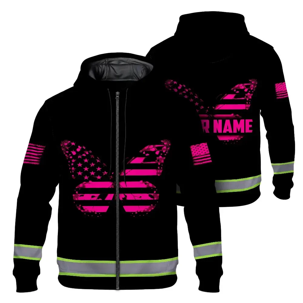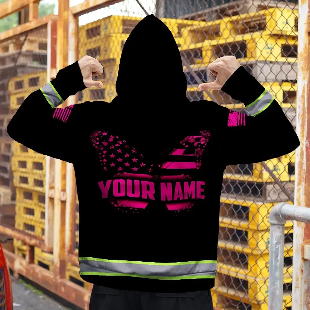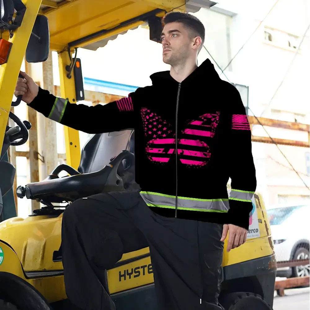 Hi Vis Zip Hoodie Reflective Pink Buttlerfly Neon Safety For Woman
