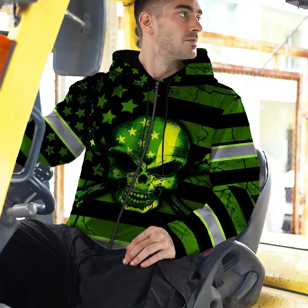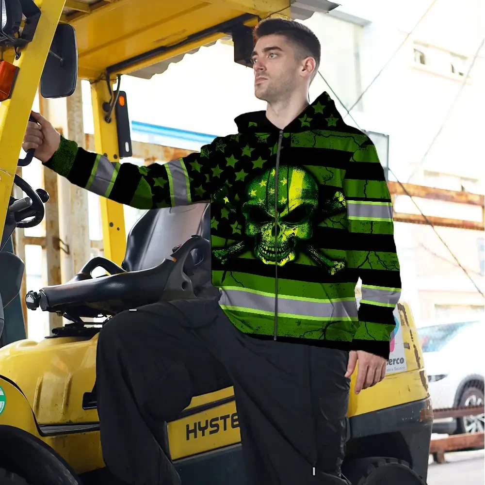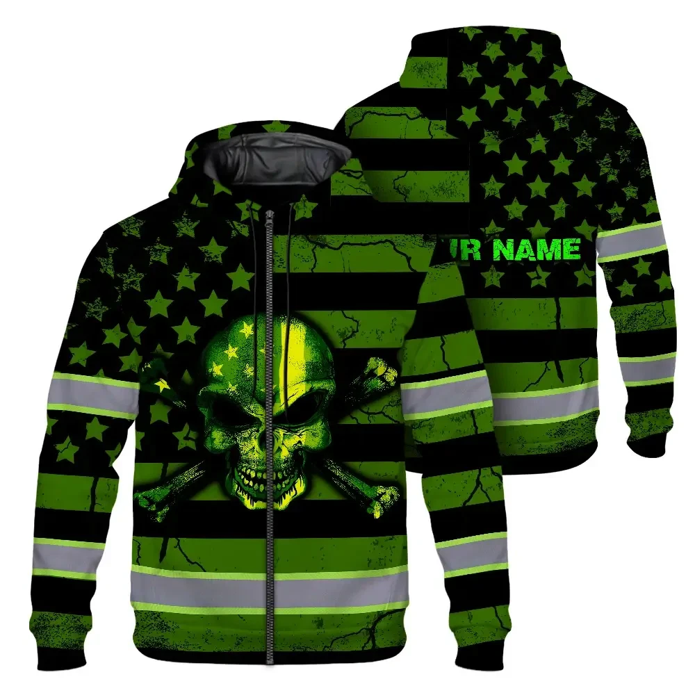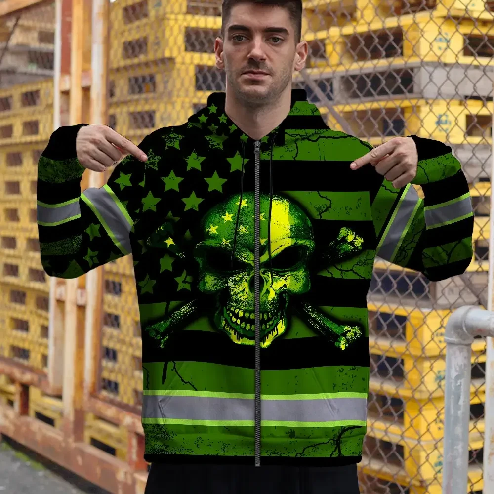 Hi Vis Zip Hoodie Reflective Skull Neon US Flag Custom Name Safety Workwear