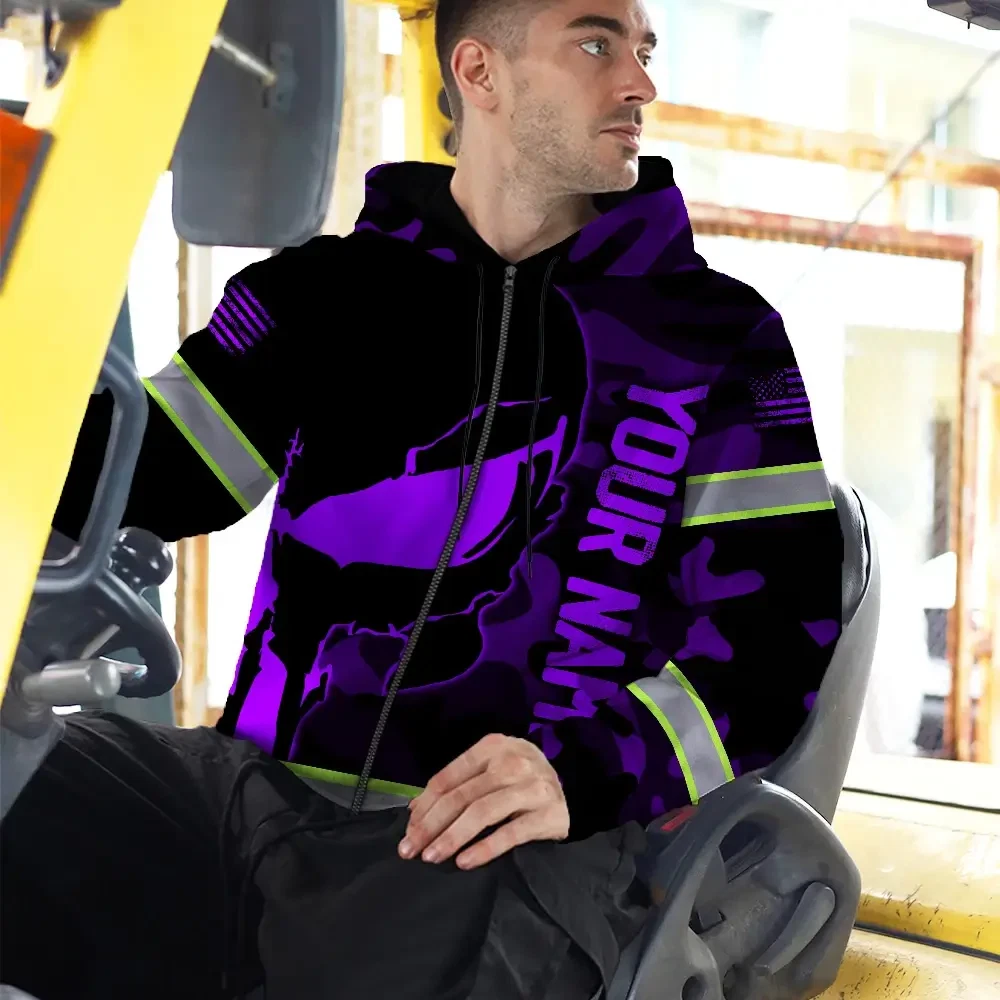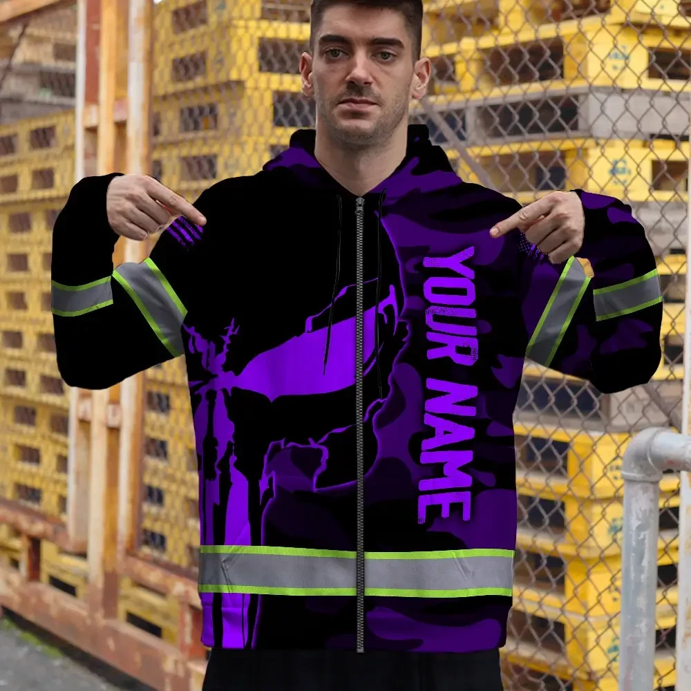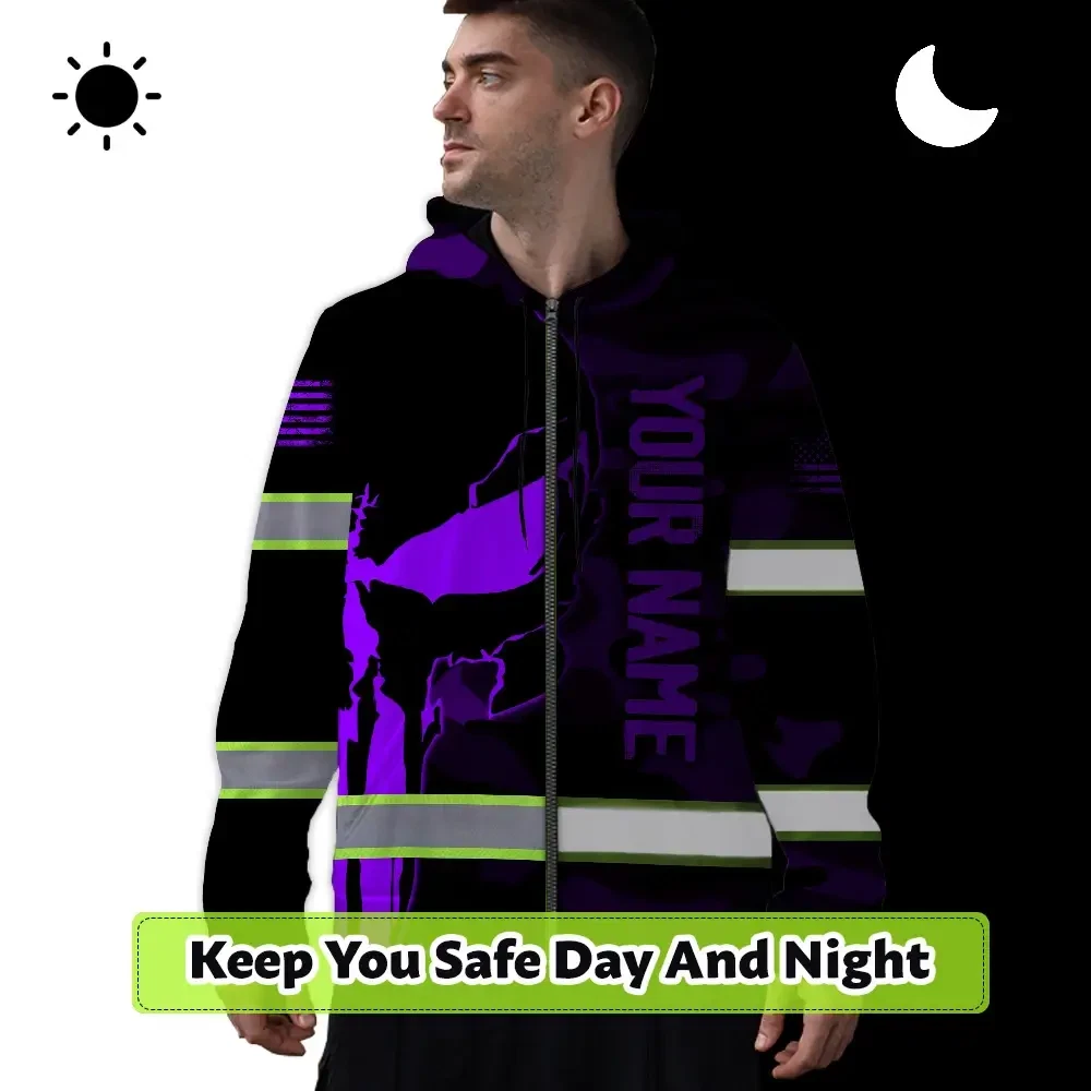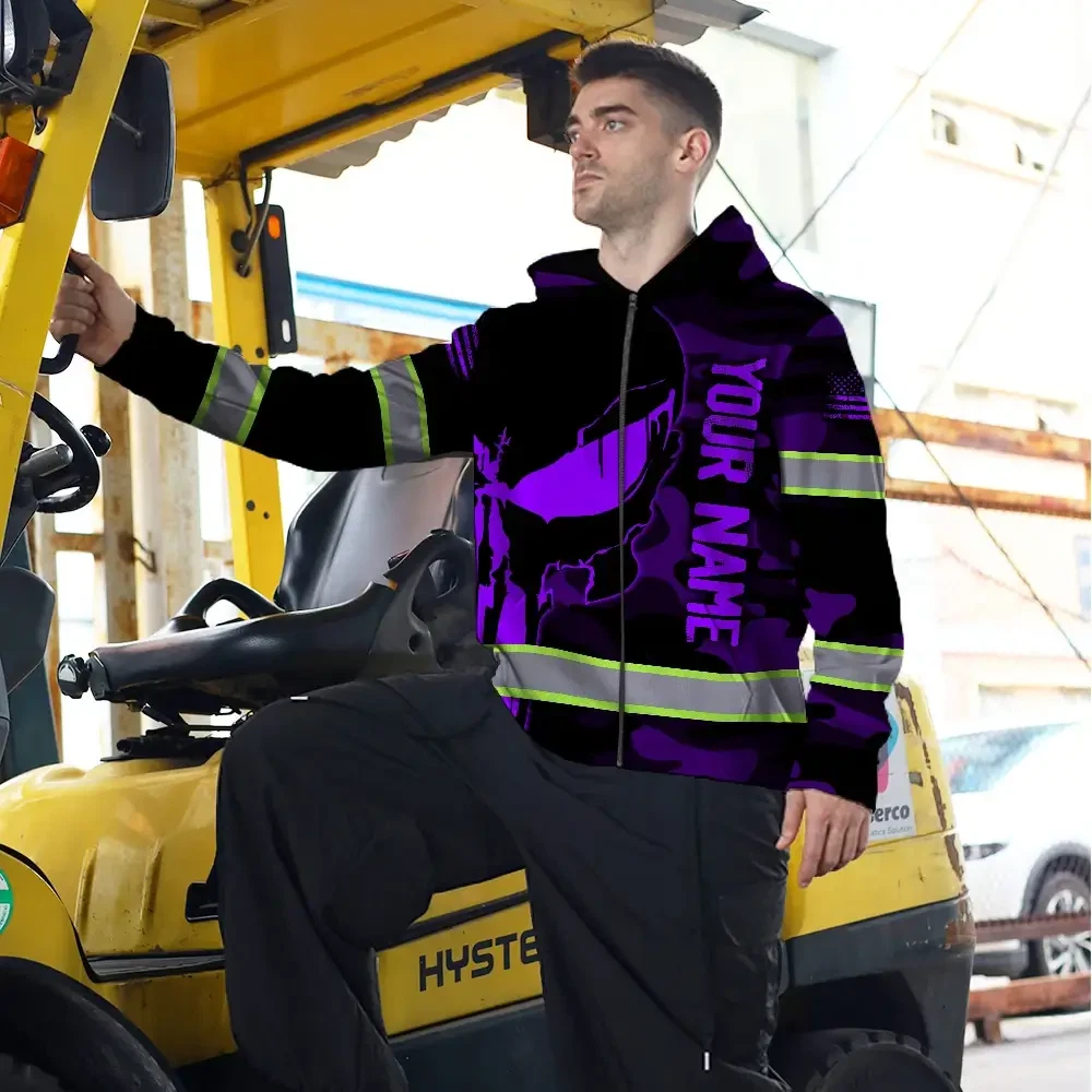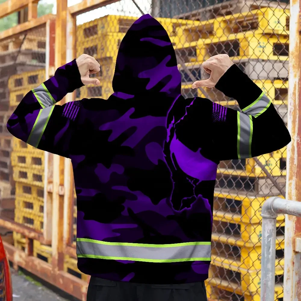 Hi Vis Zip Hoodie Reflective Skull Violet Camo Neon US Flag Custom Name Safety Workwear