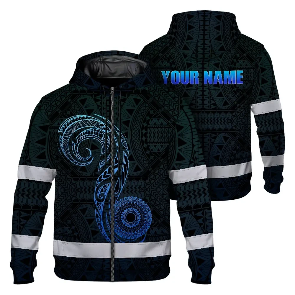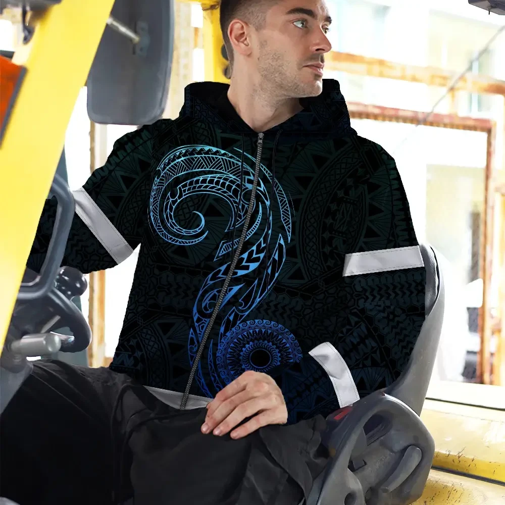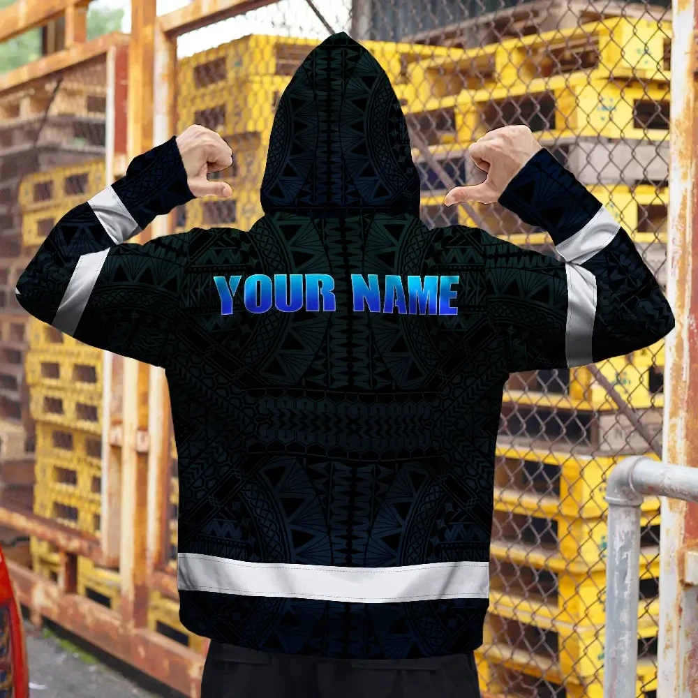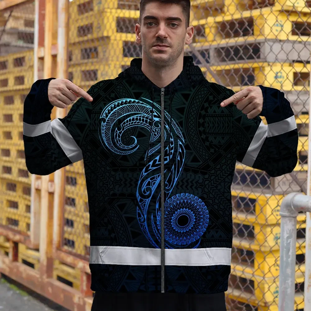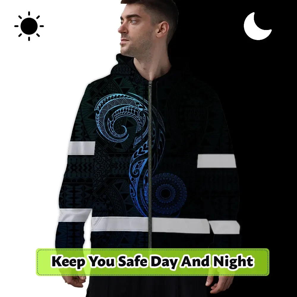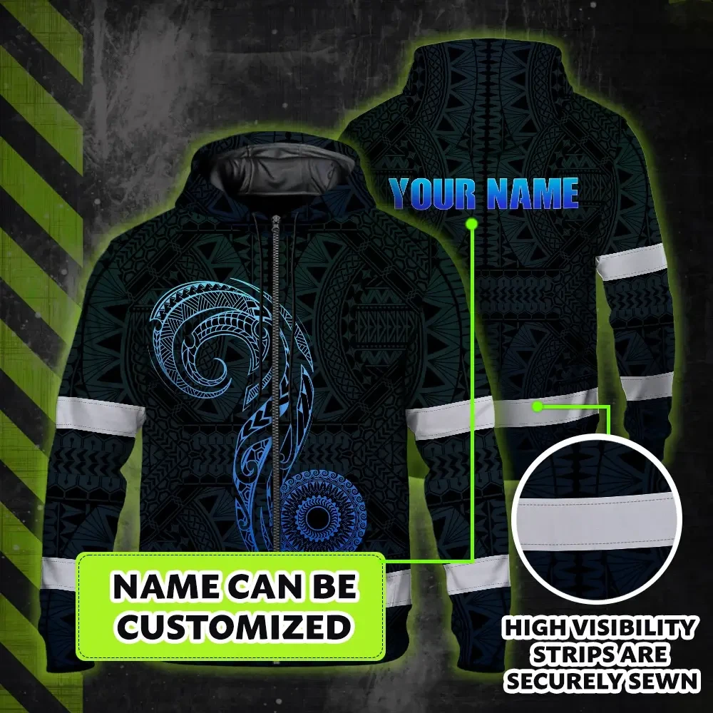 Hi Vis Zip Hoodie Reflective Tapes Gradient Blue Neon Hawaii Custom Name Safety Workwear For Workers, Truckers, Operators