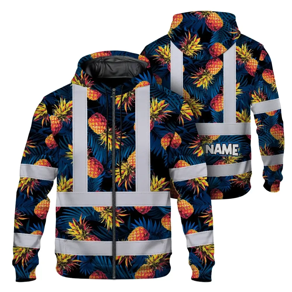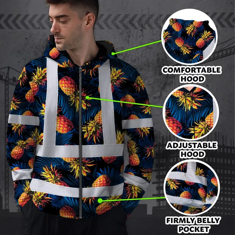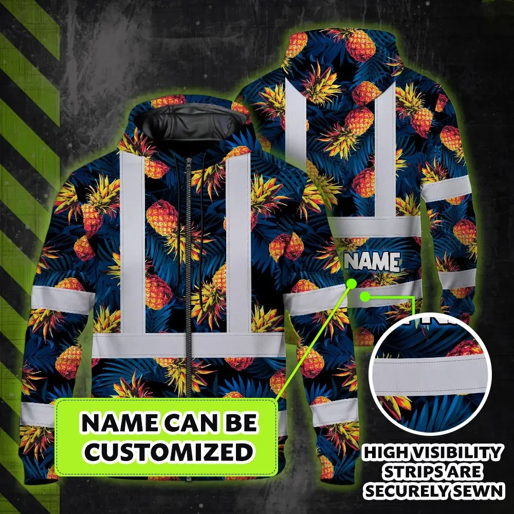 Hi Vis Zip Hoodie Reflective Tapes Orange Neon And Dark Blue Custom Name Safety Workwear For Workers, Truckers, Operators