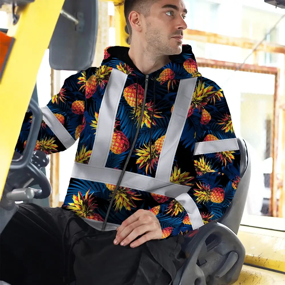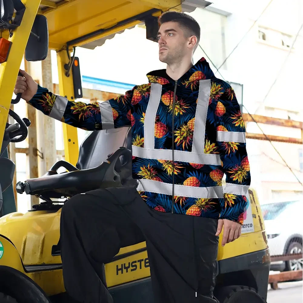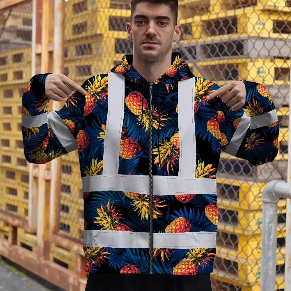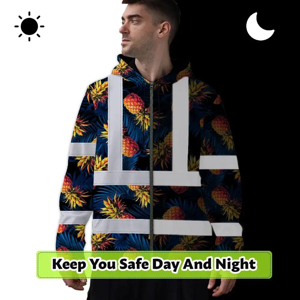 Hi Vis Zip Hoodie Reflective Tapes Orange Neon And Dark Blue Custom Name Safety Workwear For Workers, Truckers, Operators