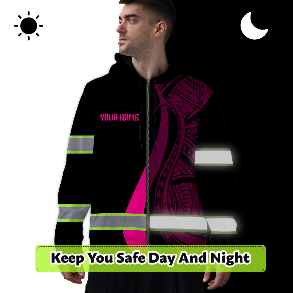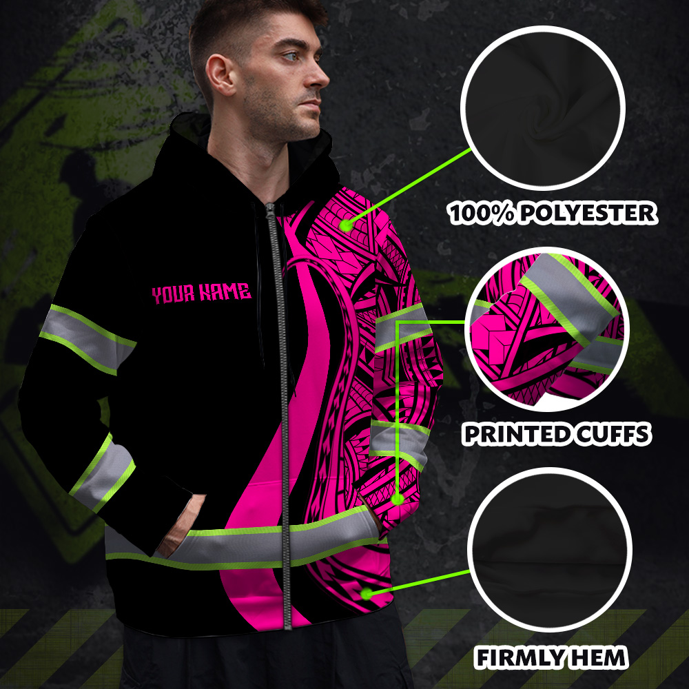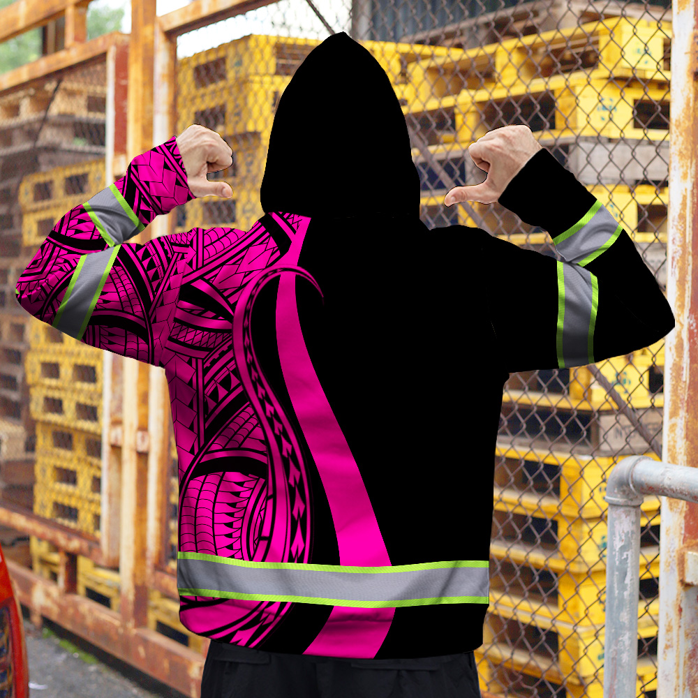 Hi Vis Zip Hoodie Reflective Tapes Pink Neon Hawaii Key Features