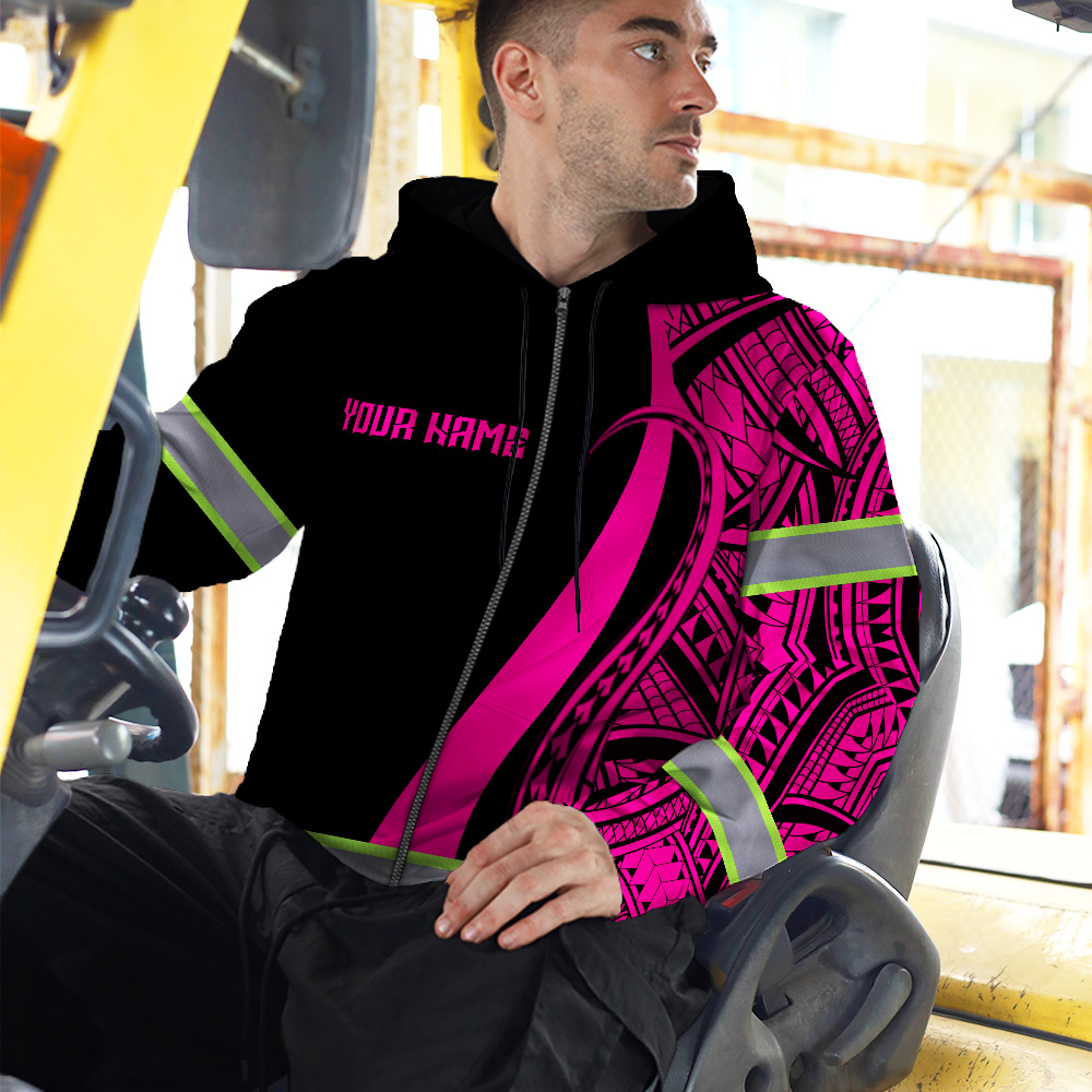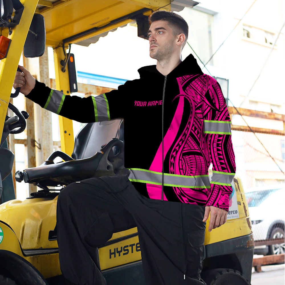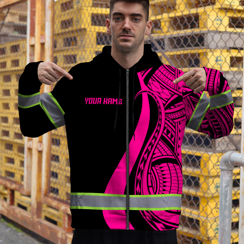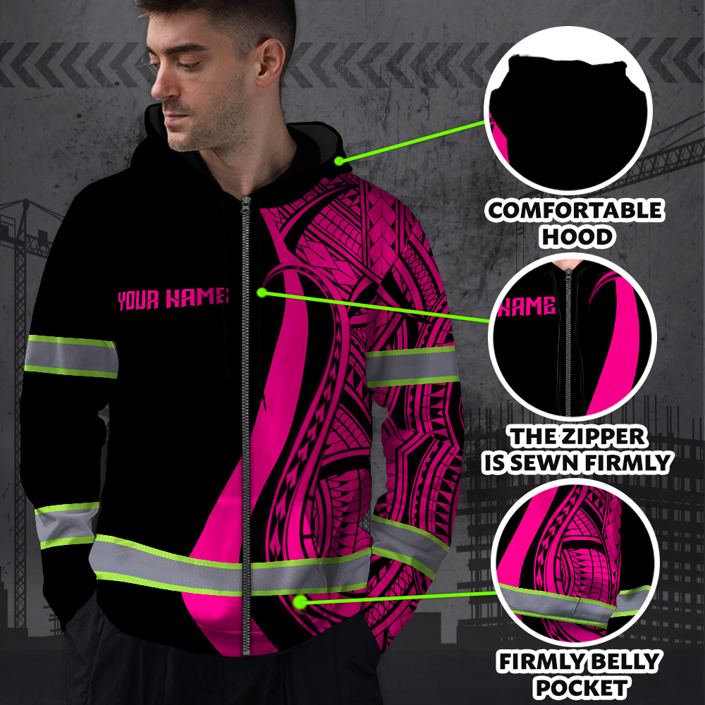 Hi Vis Zip Hoodie Reflective Tapes Pink Neon Hawaii Key Features