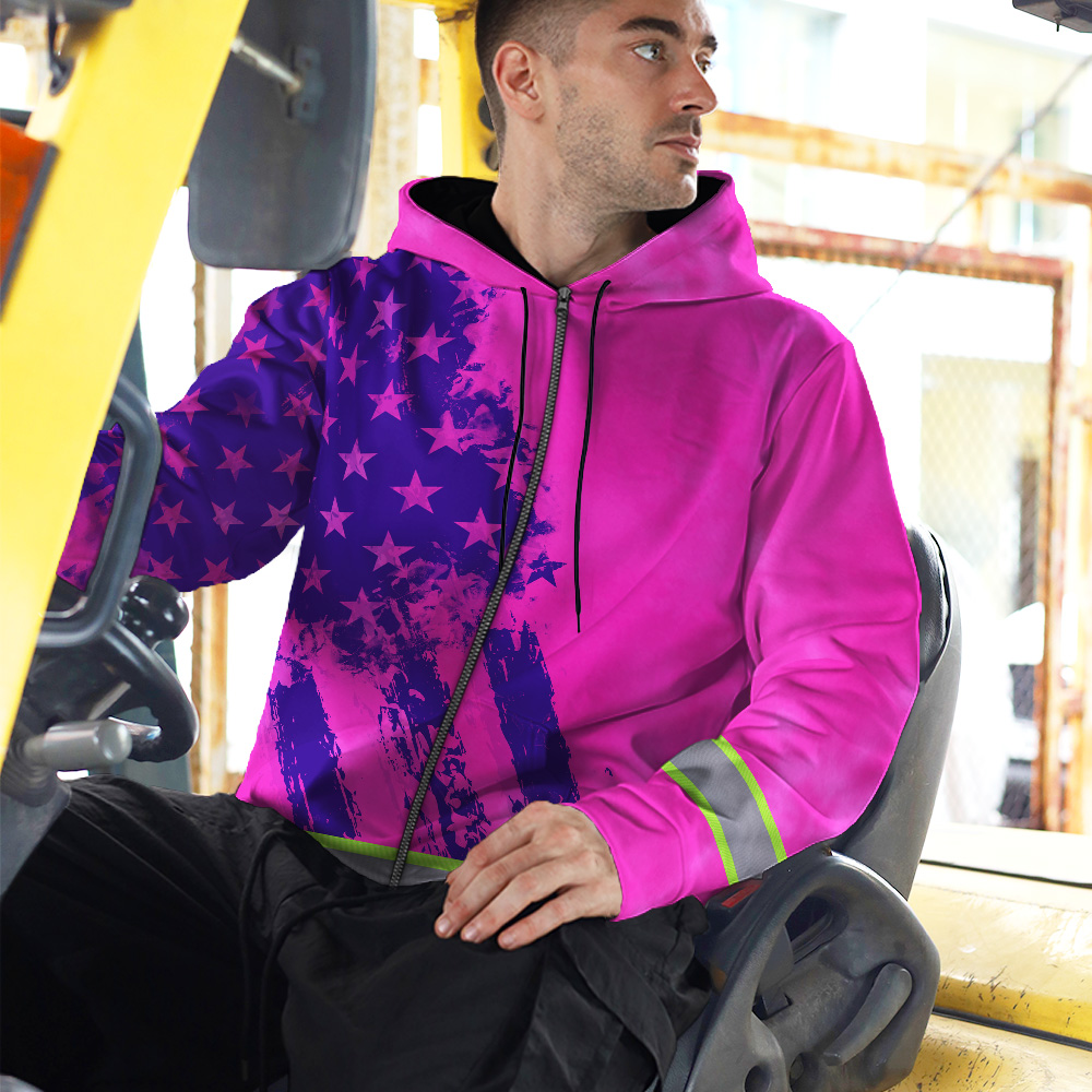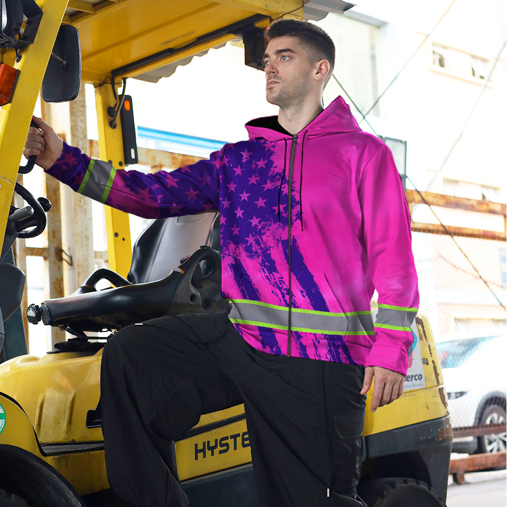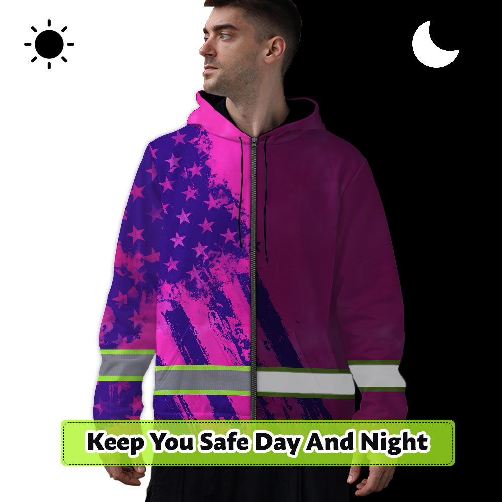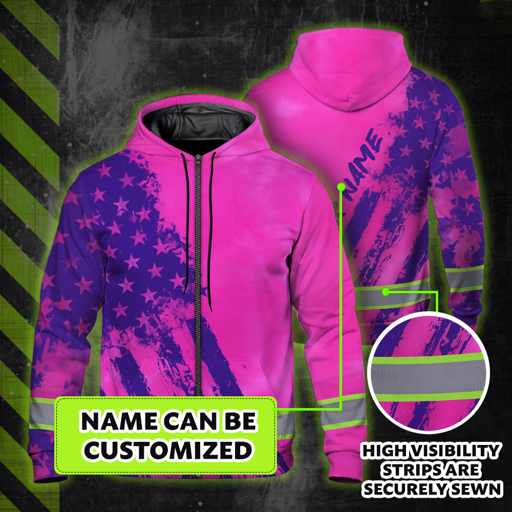 Hi Vis Zip Hoodie Reflective Tapes Pink Violet Flag Custom Name