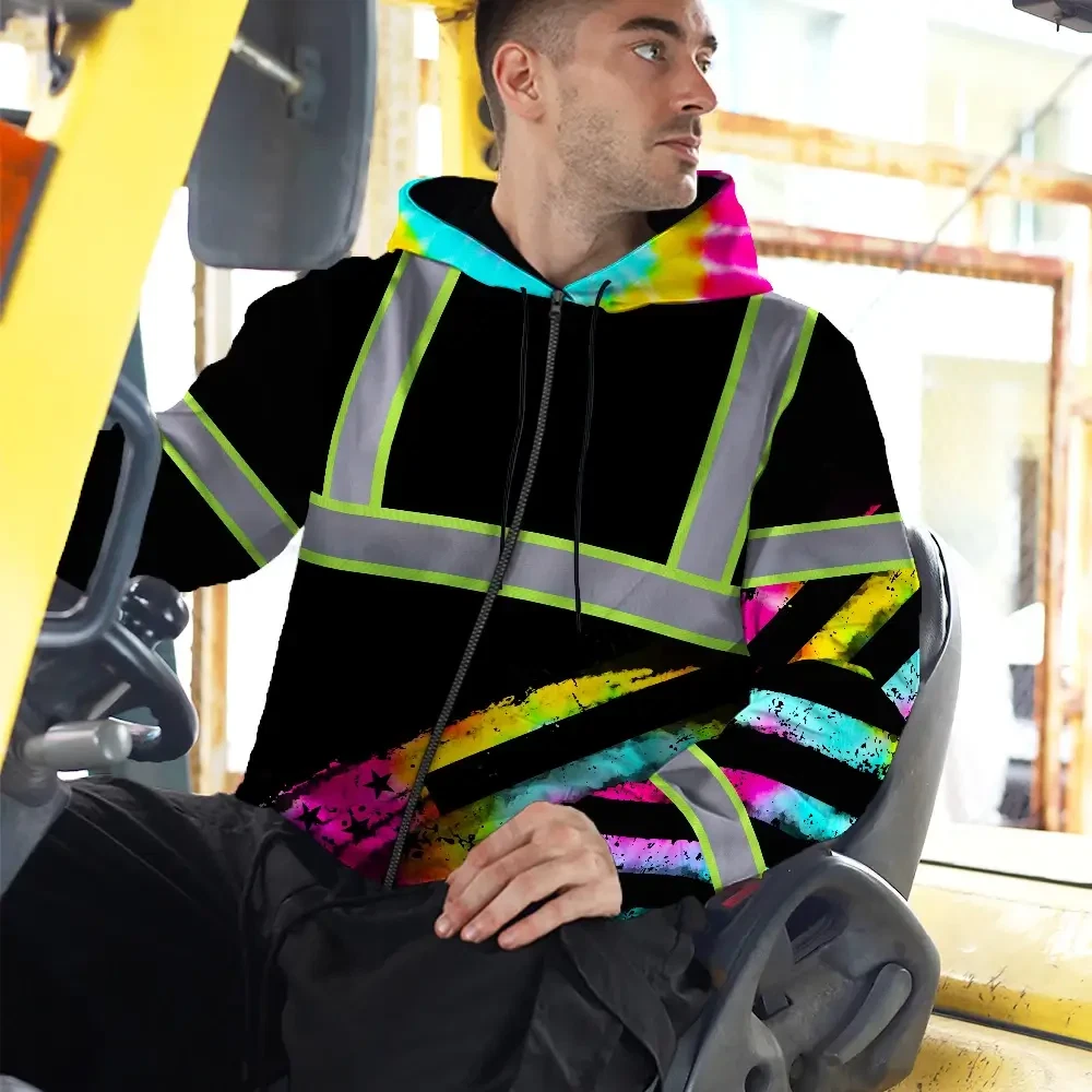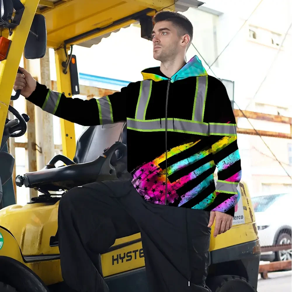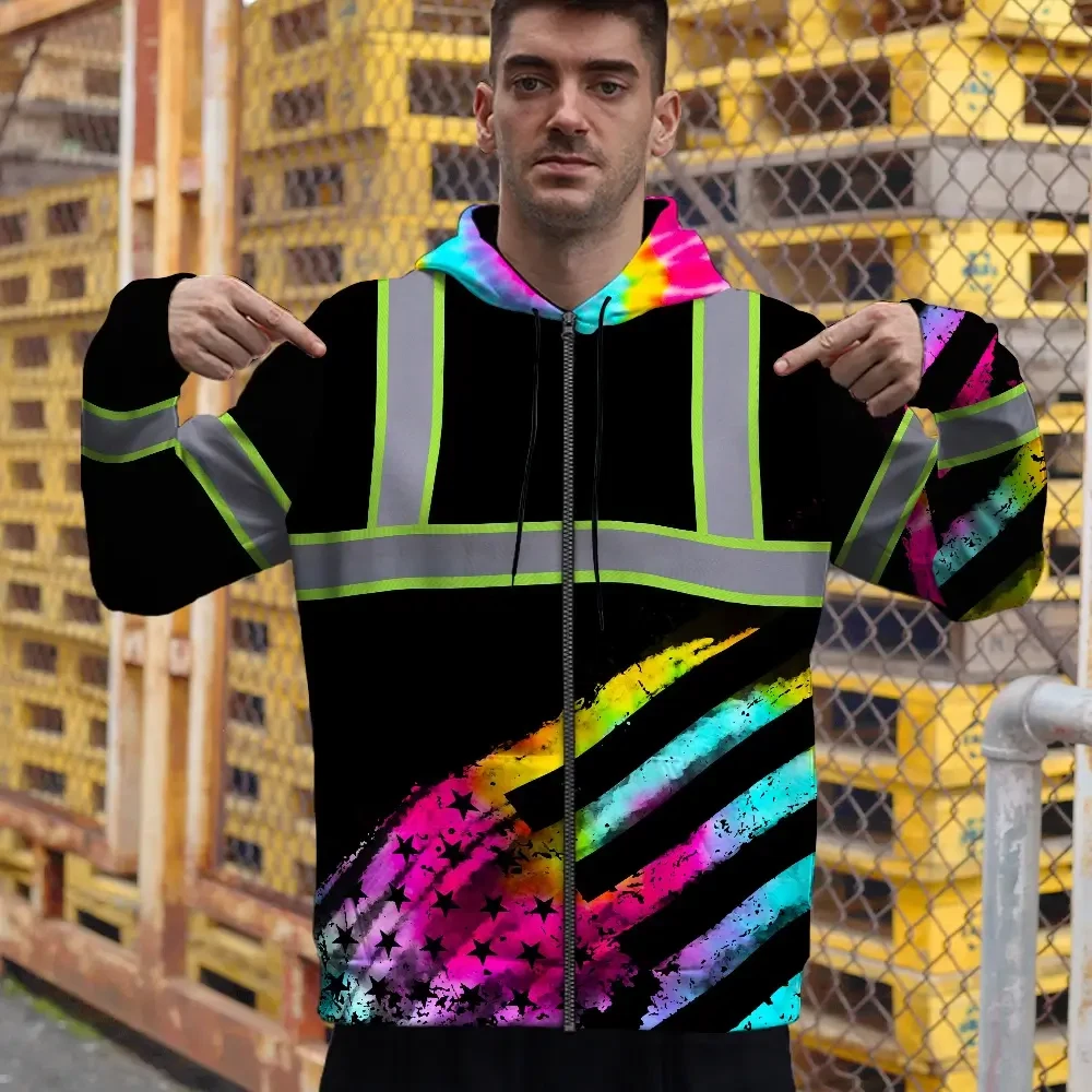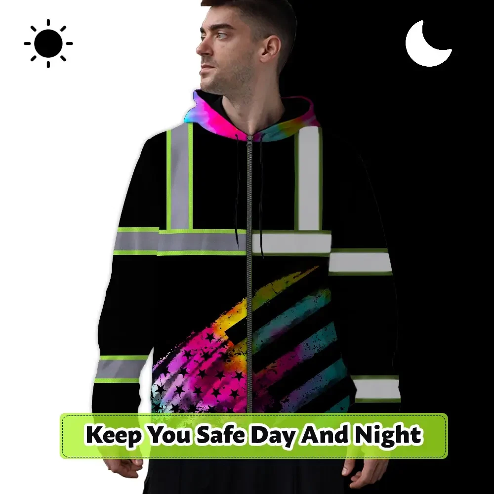 Hi Vis Zip Hoodie Reflective Tapes Rainbow Flag Tie Dye Custom Name