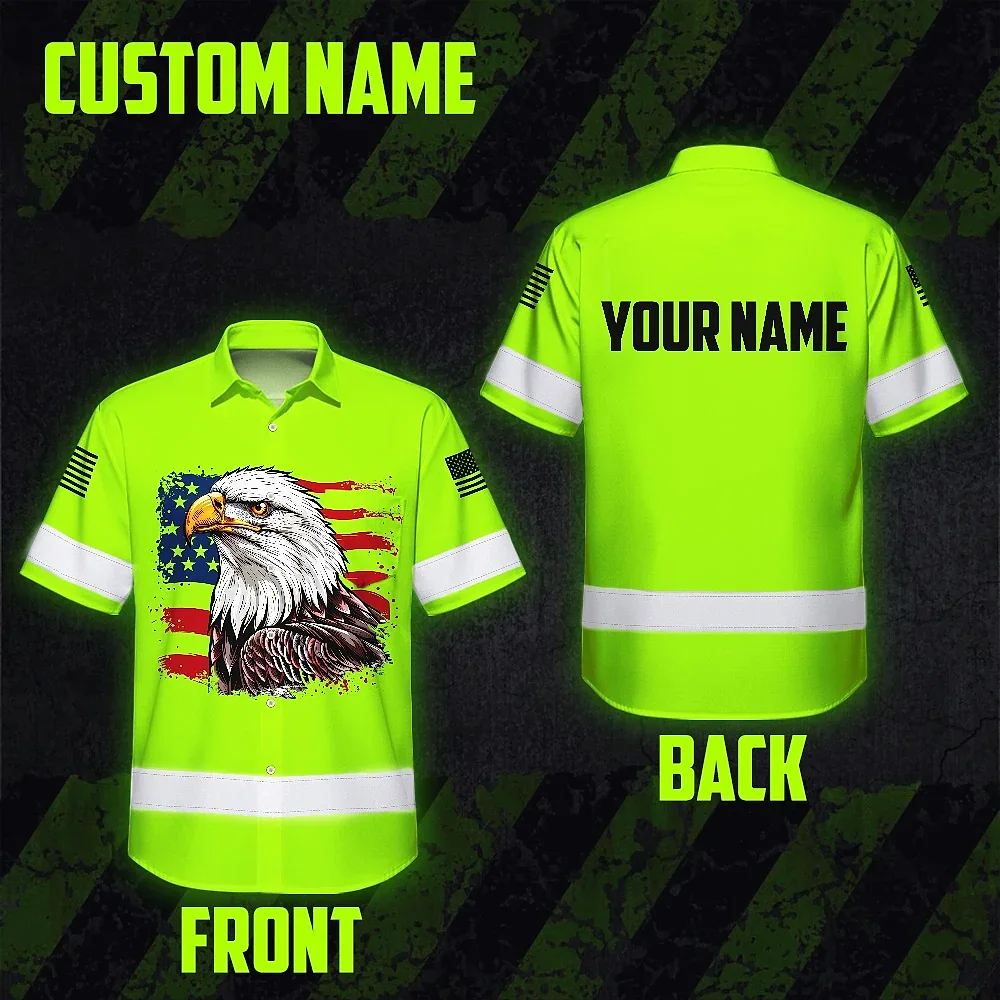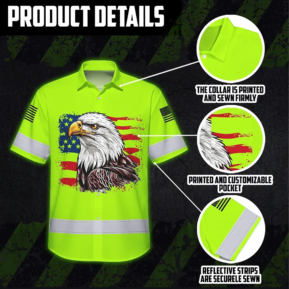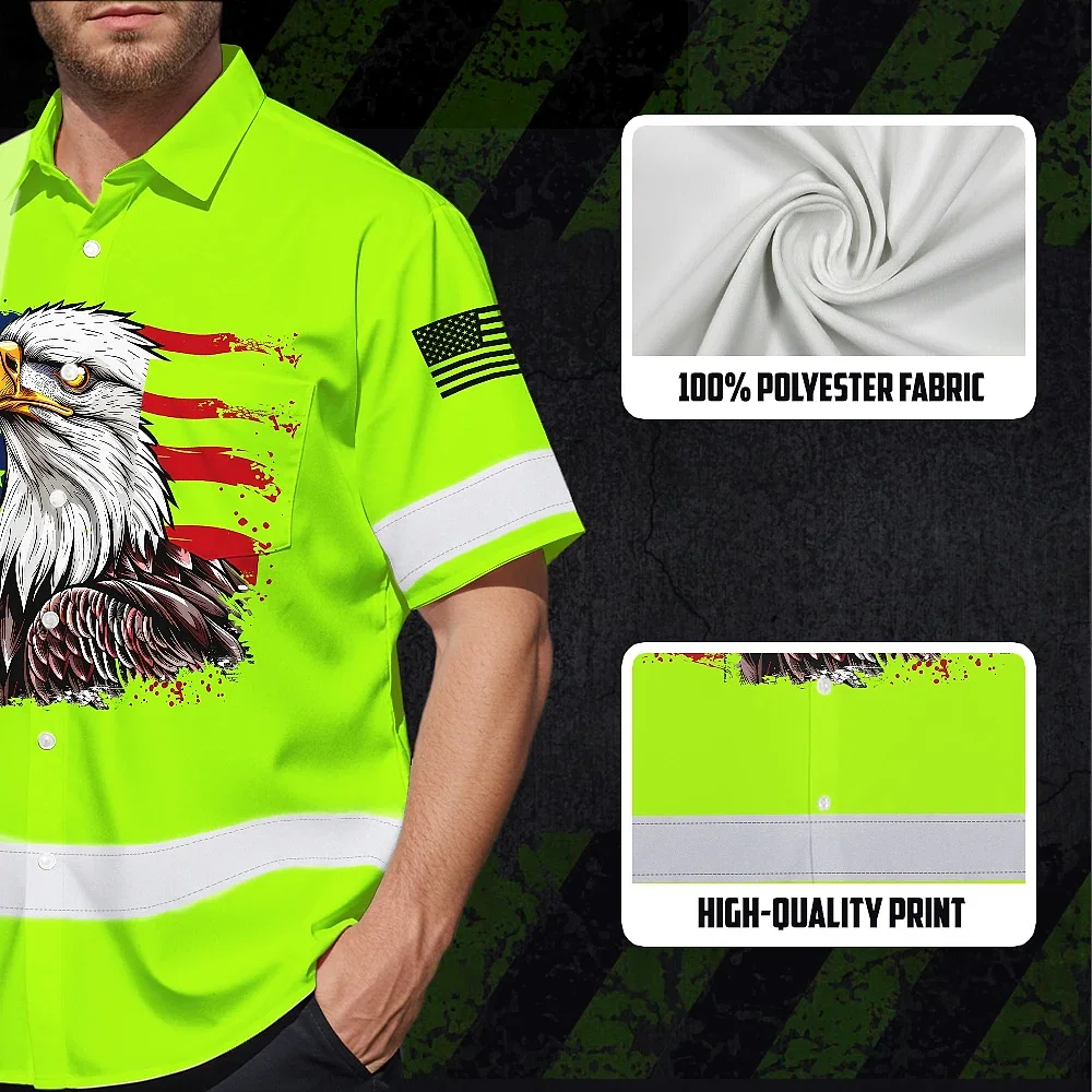 High Visibility Hawaiian Shirt Green Neon Reflective Eagles Safety Shirts For Workers Runners Patriotic