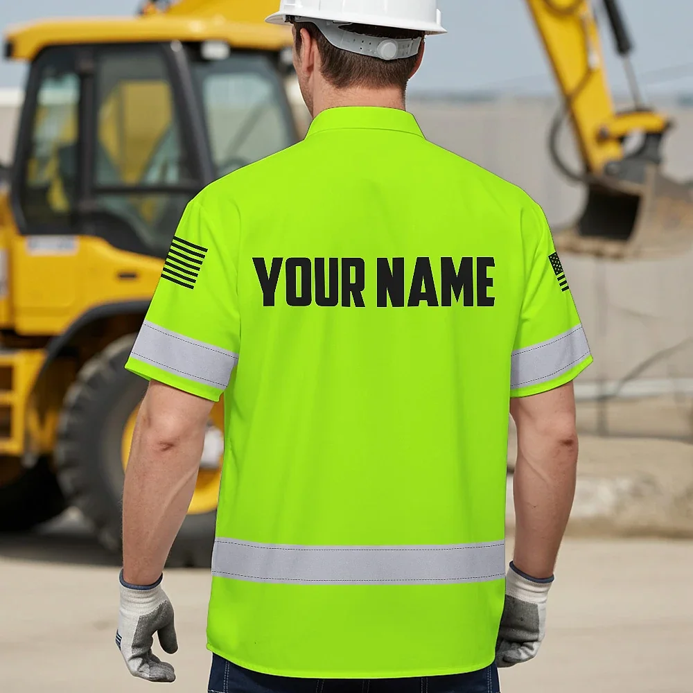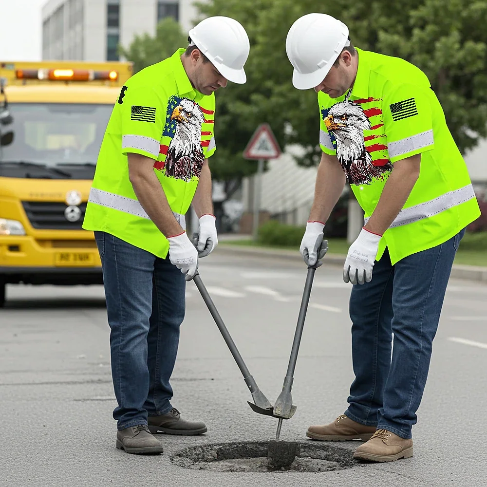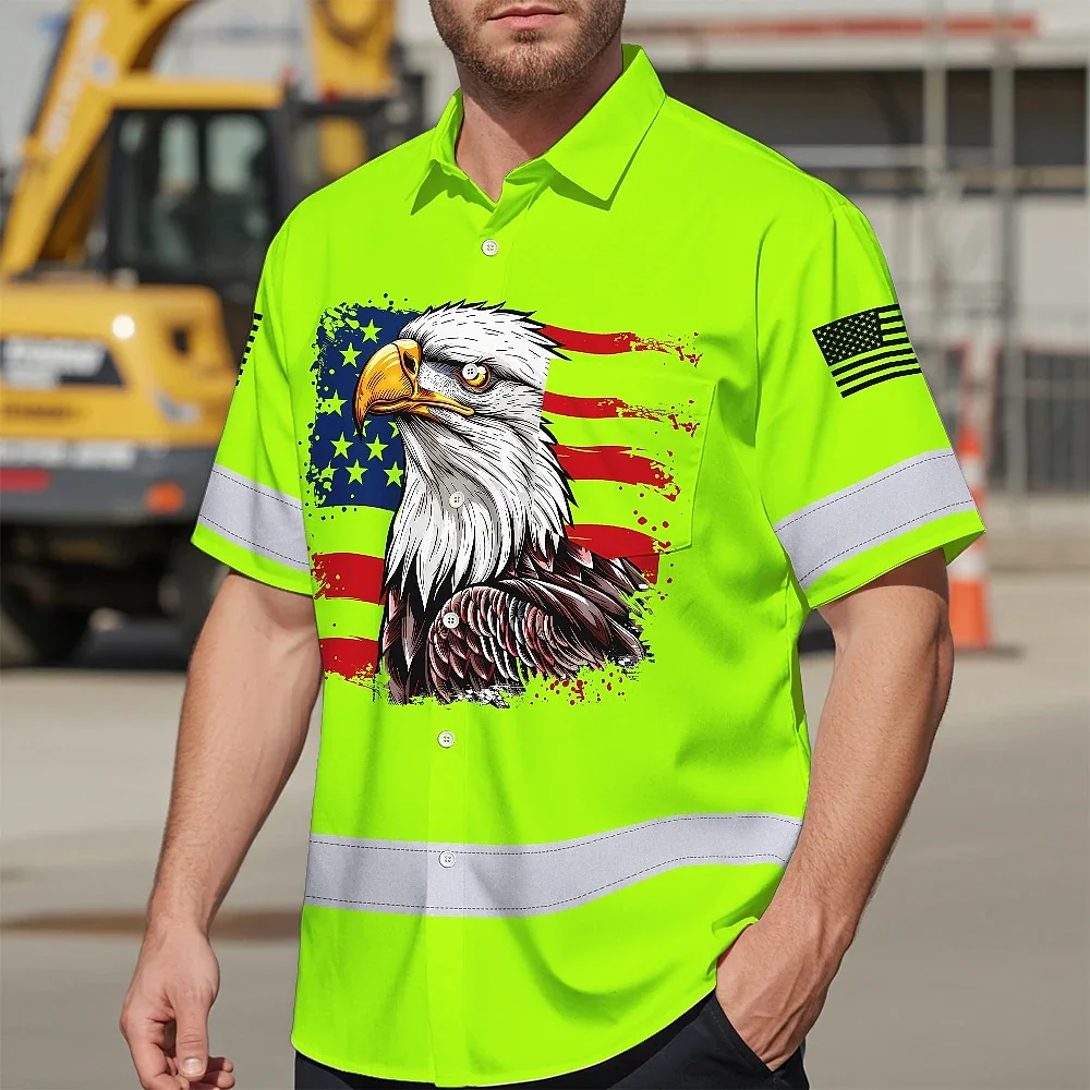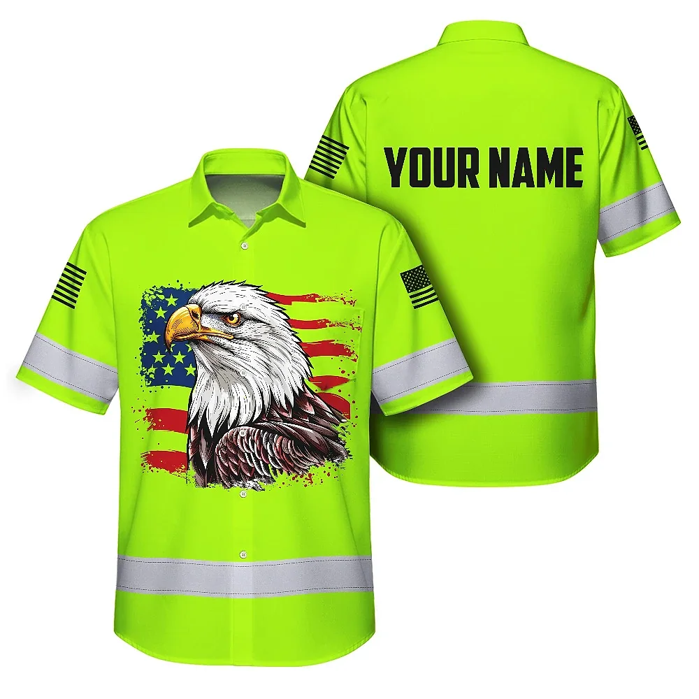 High Visibility Hawaiian Shirt Green Neon Reflective Eagles Safety Shirts For Workers Runners Patriotic