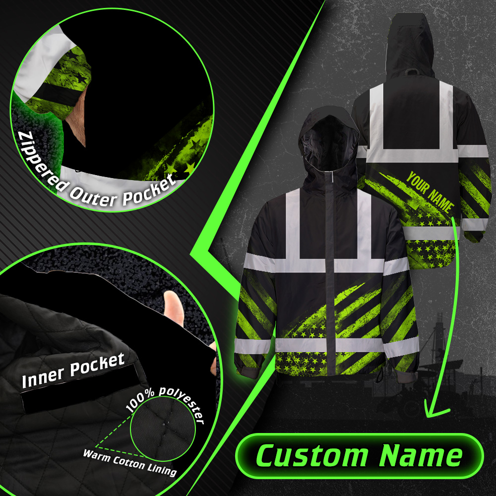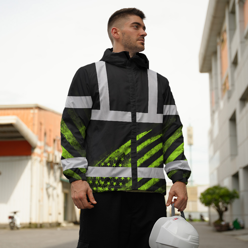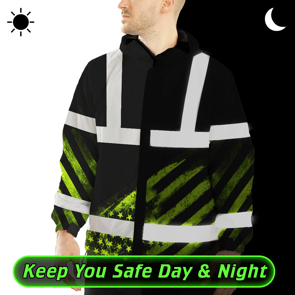 High Visibility Jacket Waterproof Reflective US Flag Custom Name Jacket Safety Workwear