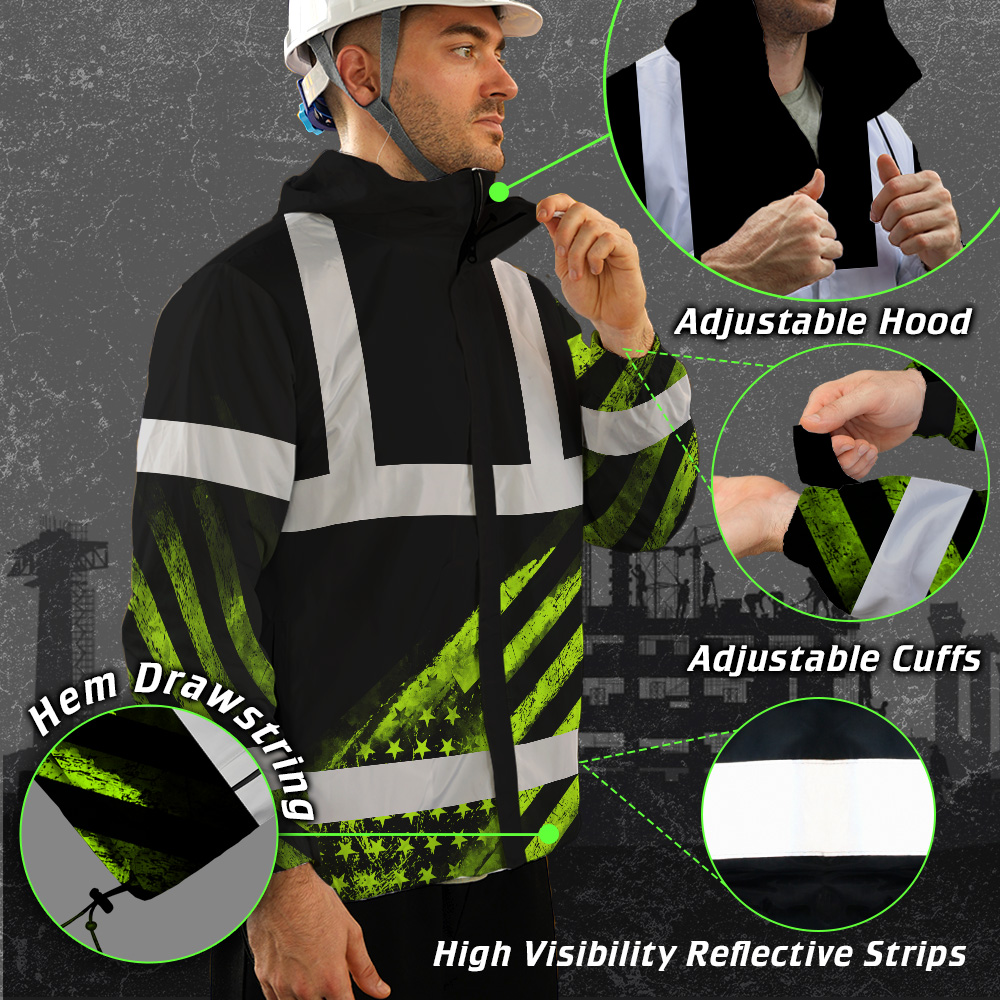 407ADIURJ029 – High Visibility Jacket Waterproof Reflective US Flag