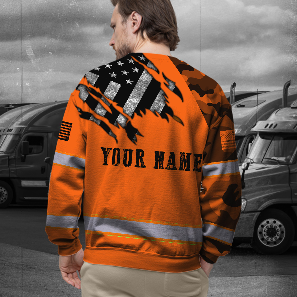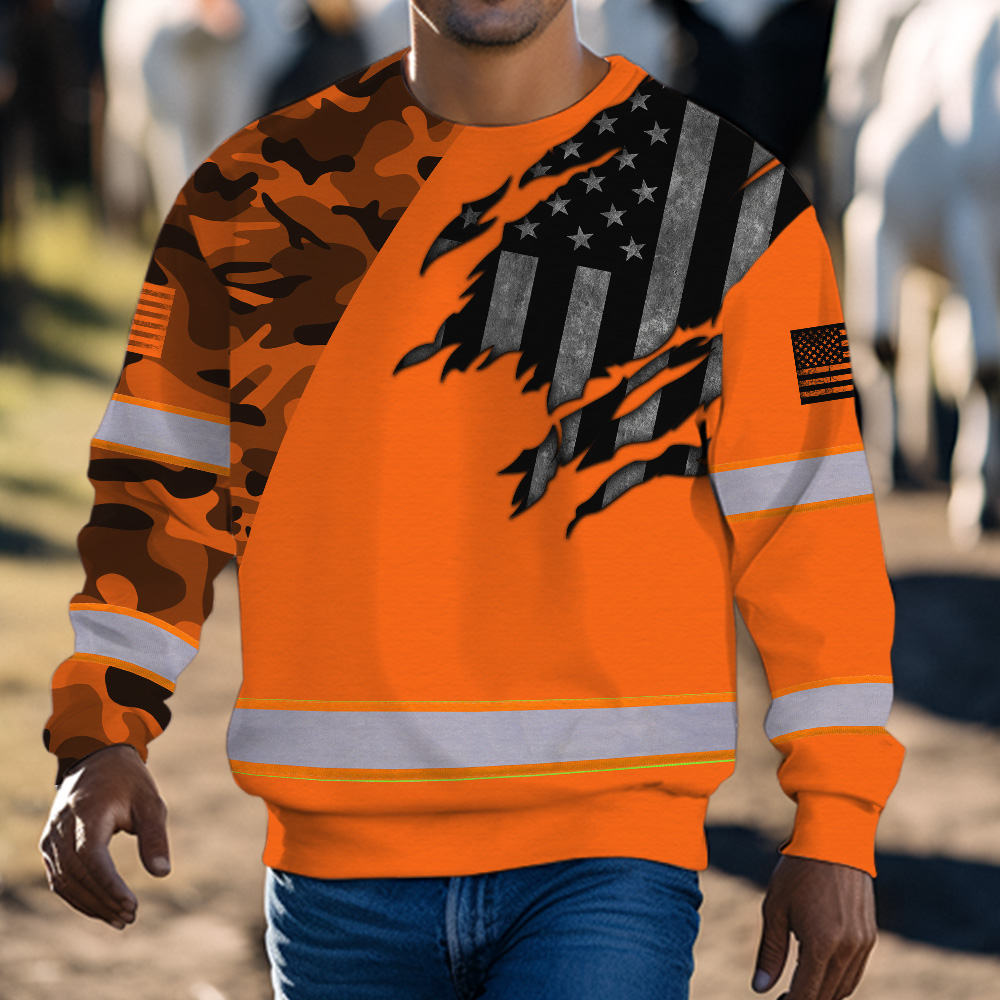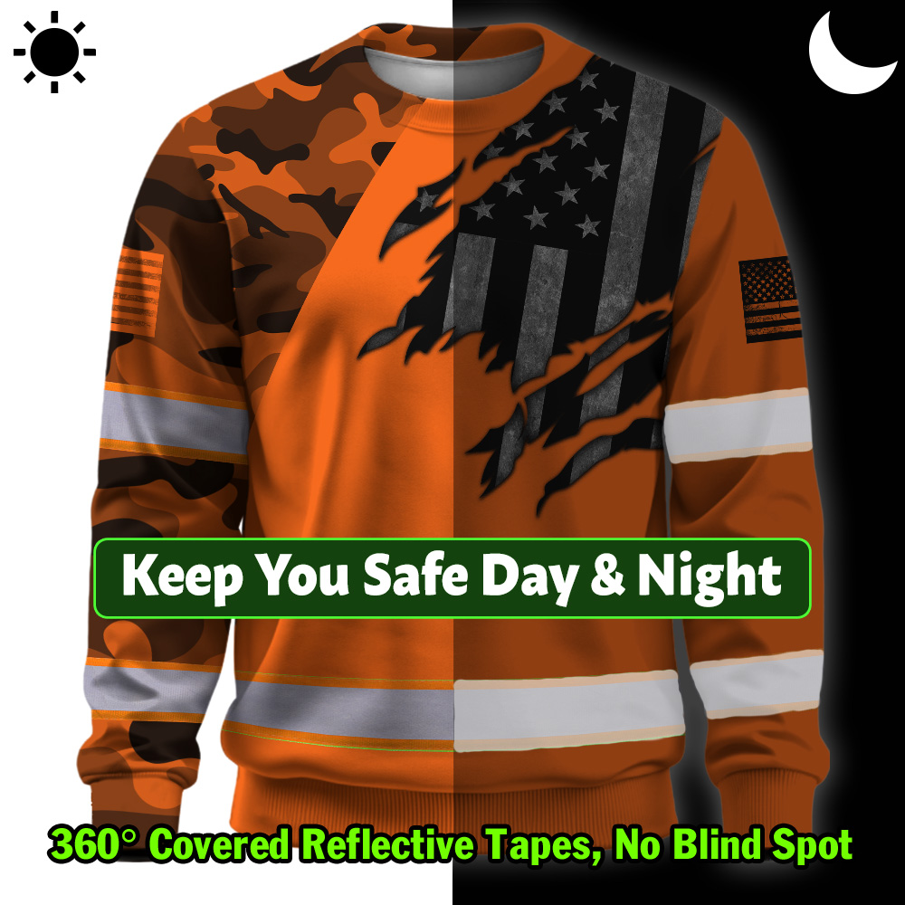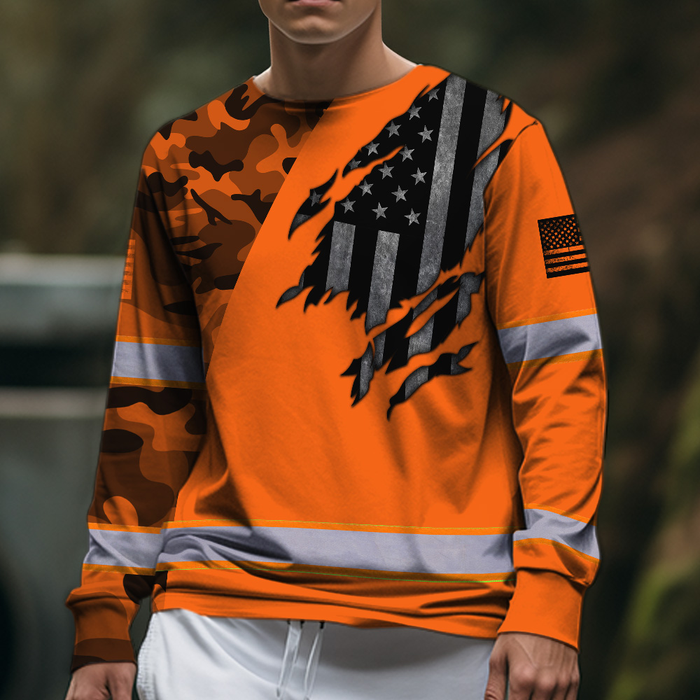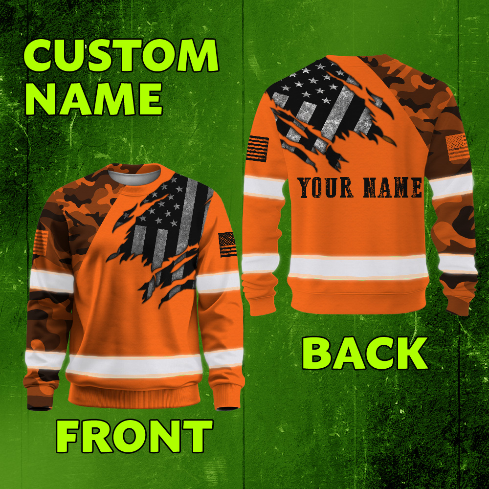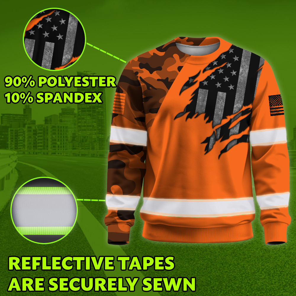 High Visibility Long Sleeve Shirt Reflective Camo Orange Neon Scratch US Flag Custom Name Safety Workwear