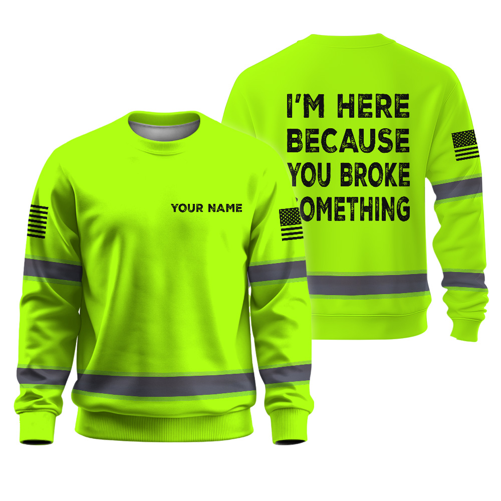 High Visibility Long Sleeve Shirt Reflective I'm Here Because You Broke Something