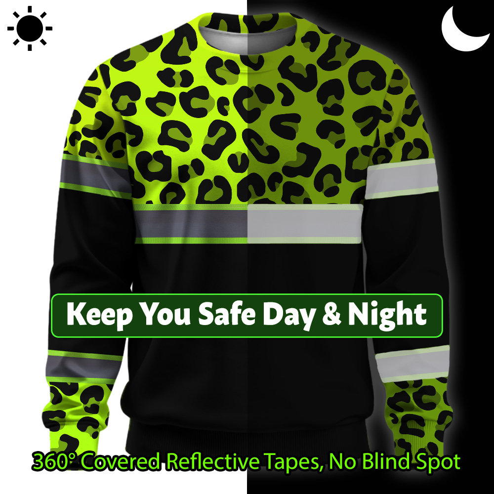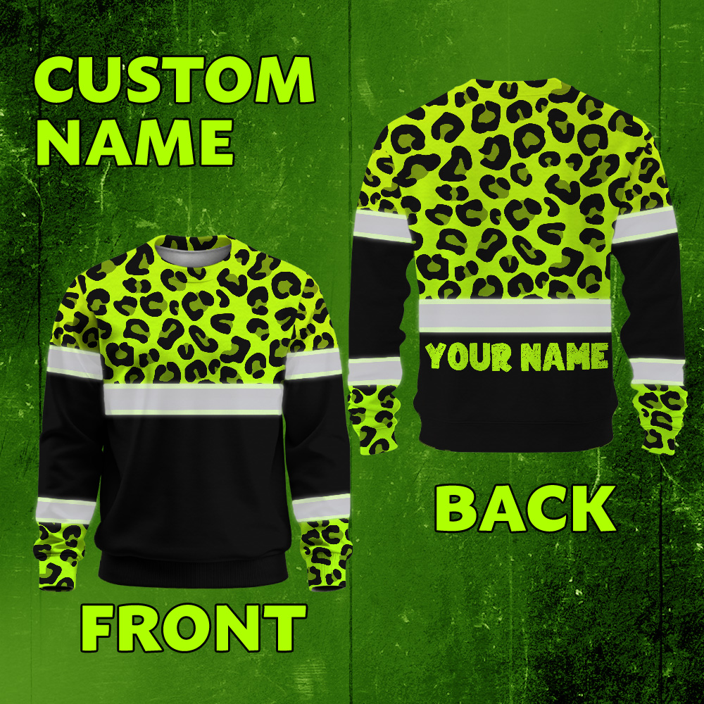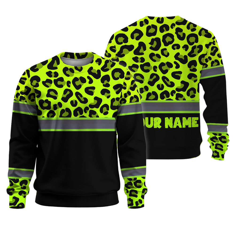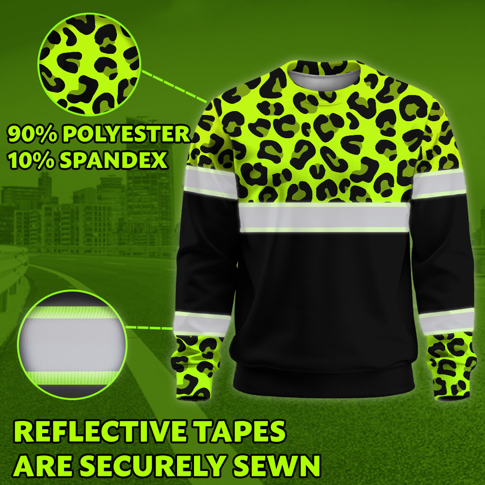 High Visibility Long Sleeve Shirt Reflective Leopard Custom Name Safety