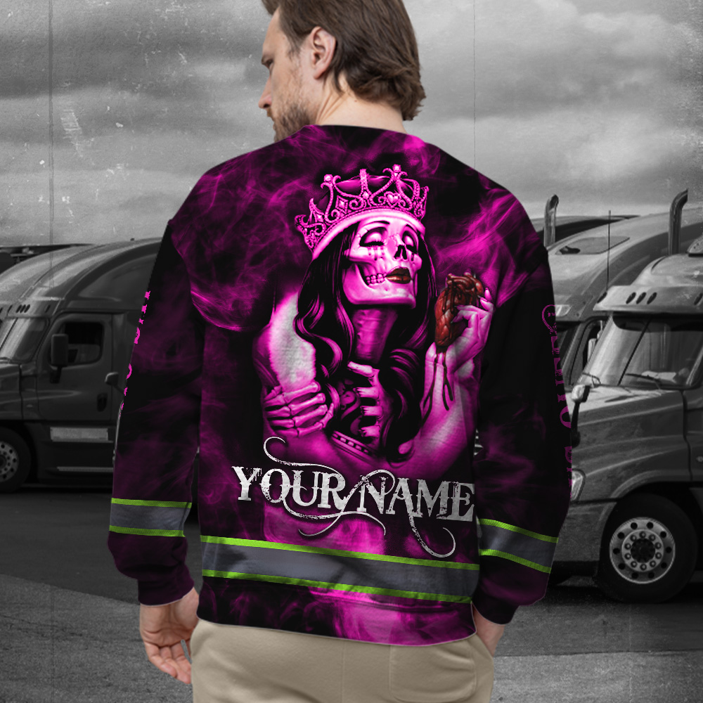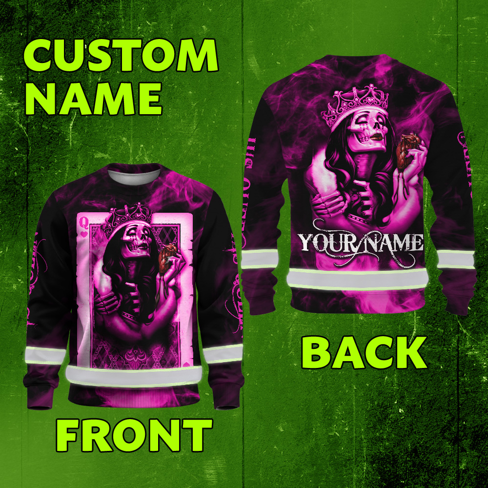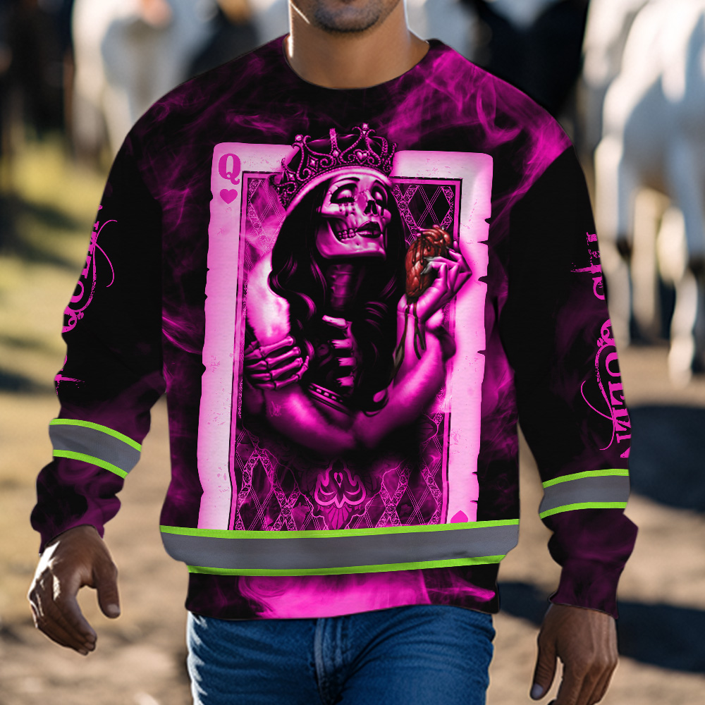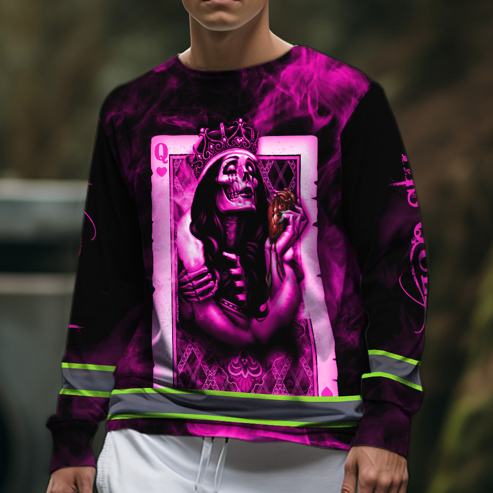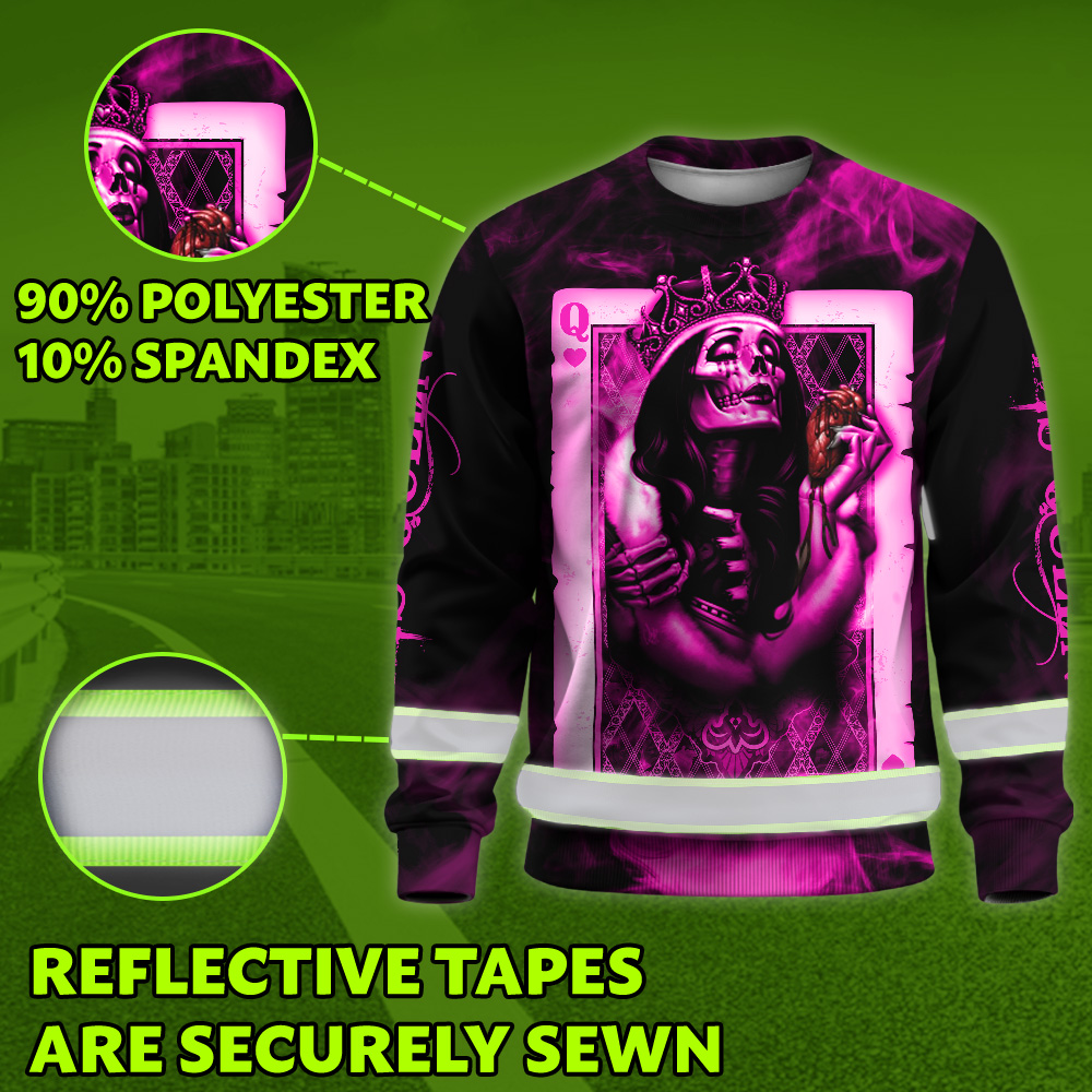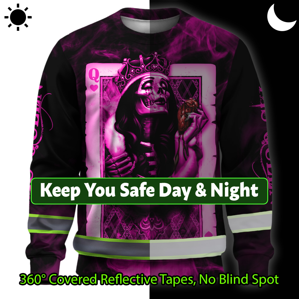 High Visibility Long Sleeve Shirt Reflective Sugar Skull Pink His Queen Safety