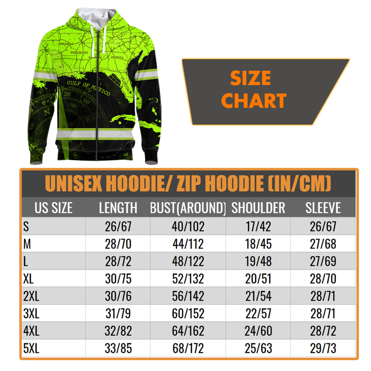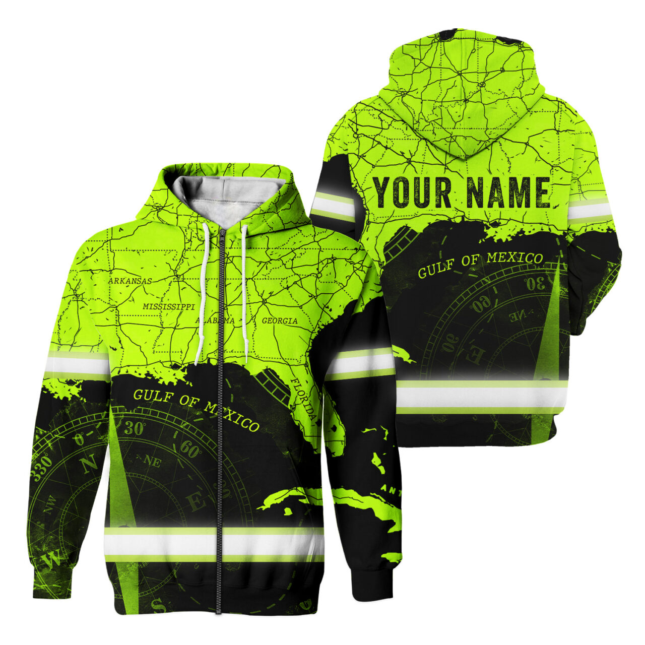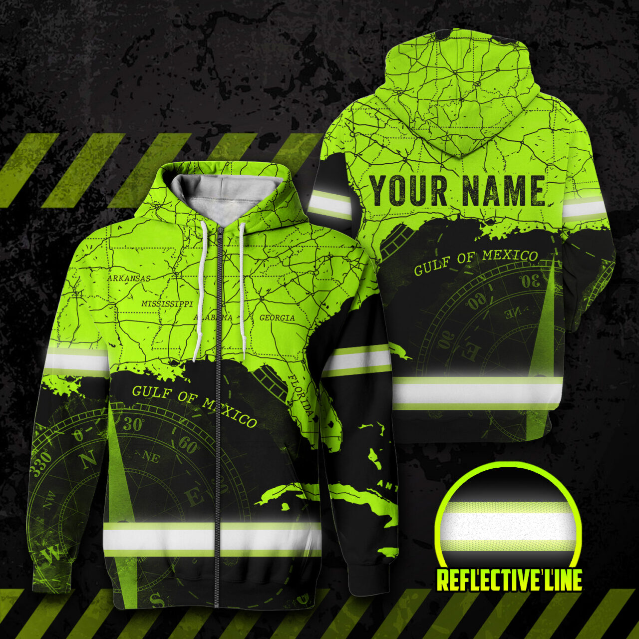 High Visibility Reflective American Map Custom Name Zip Hoodie Safety Workwear