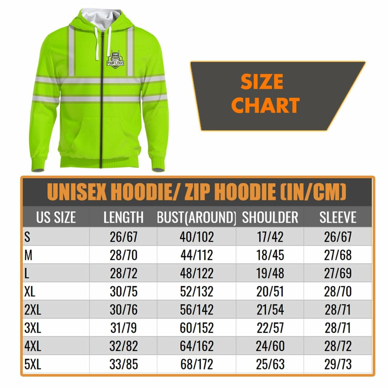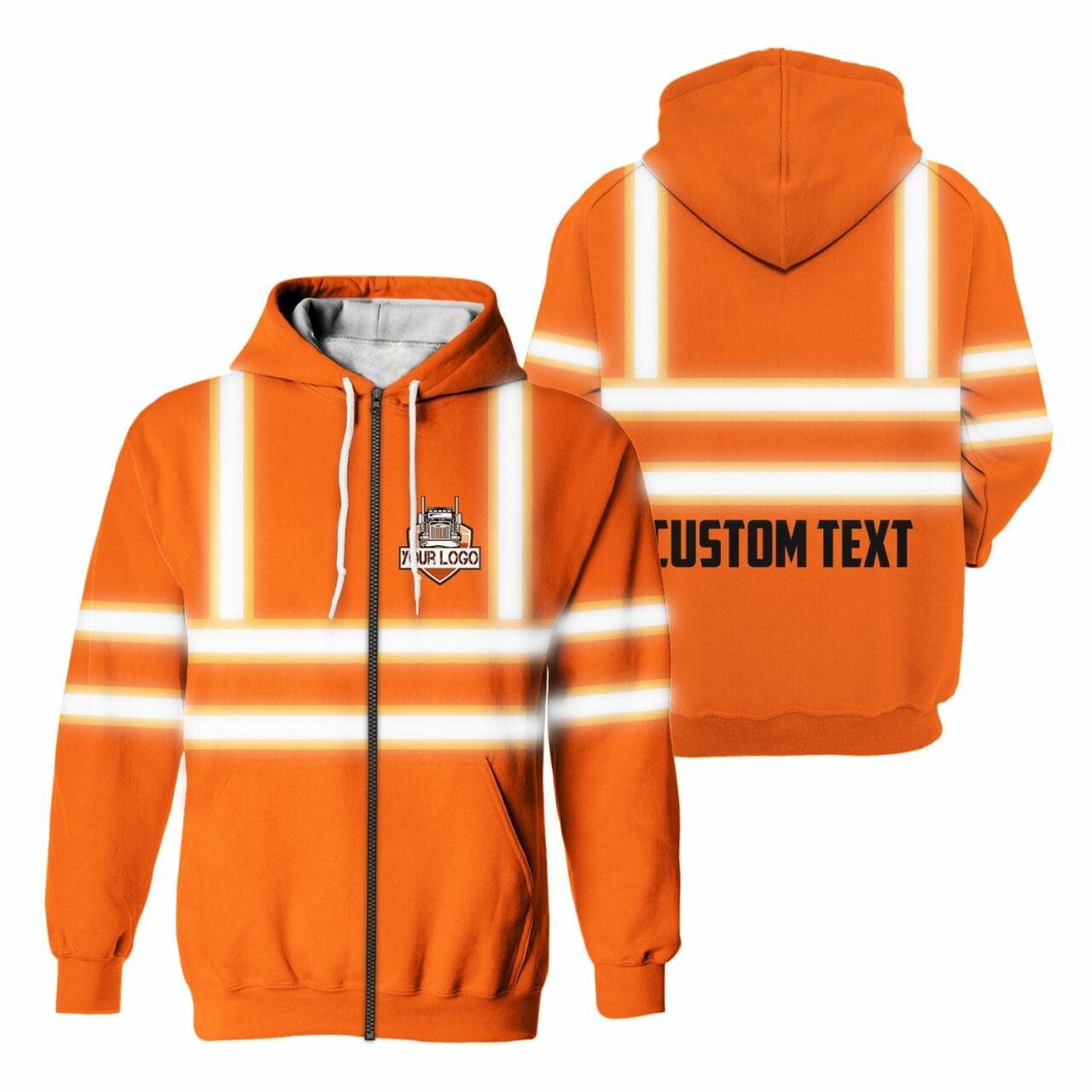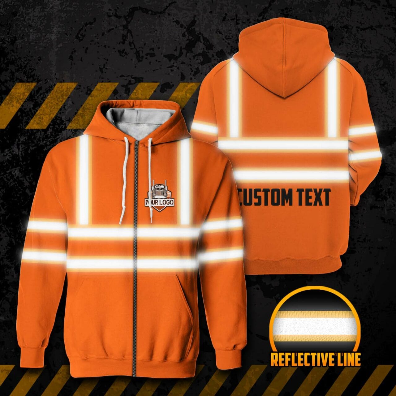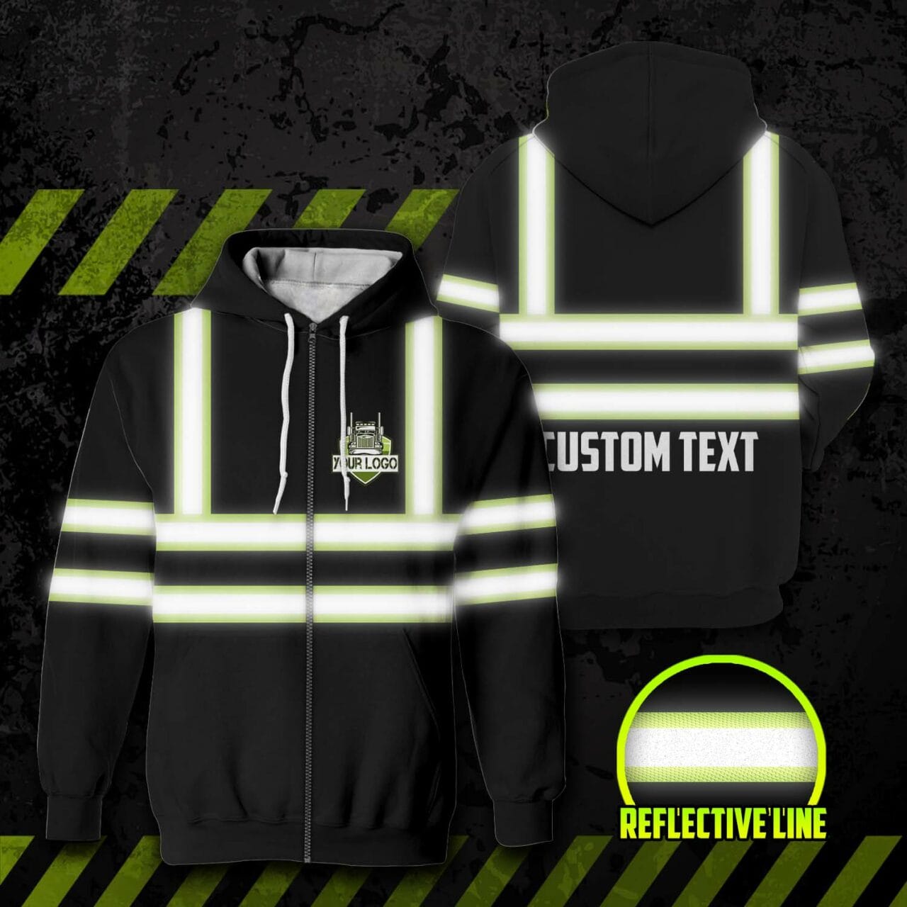 If you’re looking for a reliable and high-quality high visibility zip hoodie, then look no further than our reflective green orange black custom name safety work zip hoodie. Our zip hoodies are made of polyester and feature a comfortable relaxed fit. They’re also perfect for layering in colder weather. Plus, they include two front pockets and a drawstring hood. Best of all, they can be customized with your name or logo.