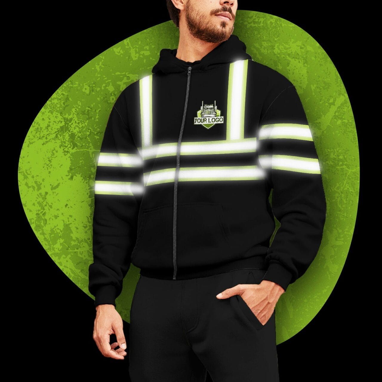 High Visibility Zip Hoodie Reflective Green Orange Black Custom Name Safety Workwear