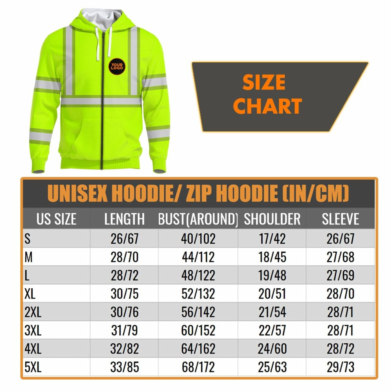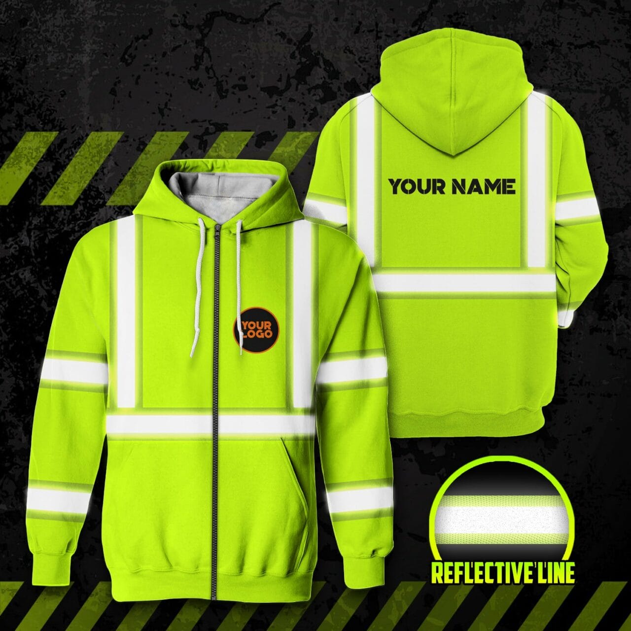 Our hi vis zip hoodies are designed to comply with the standards of workplace safety organizations. The fabric is treated with a special coating that reflects light in the dark, making you more visible to motorists and other pedestrians. Whether you’re a construction worker, runner, or cyclist, these hoodies will help keep you safe while on the job or out for a run or bike ride. Order on Hi Vis Custom today and be sure to stay safe while sporting your favorite brand!