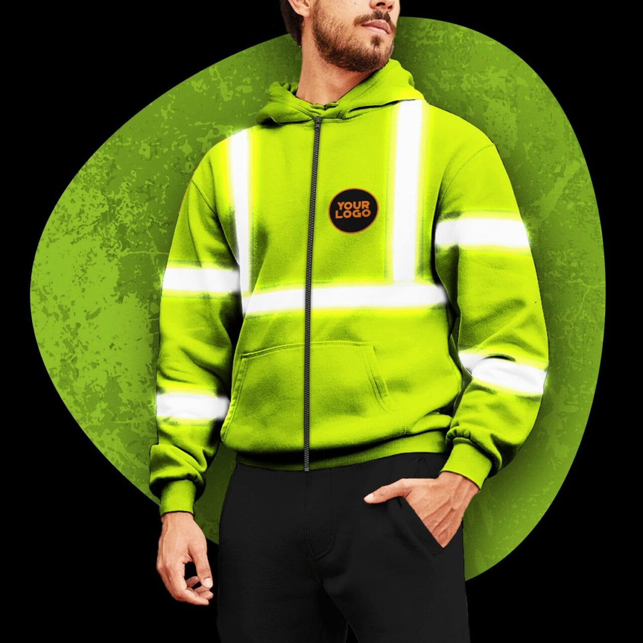 High Visibility Zip Hoodie Reflective Green Workwear Safety For Worker, Runners, Cyclist Key Features