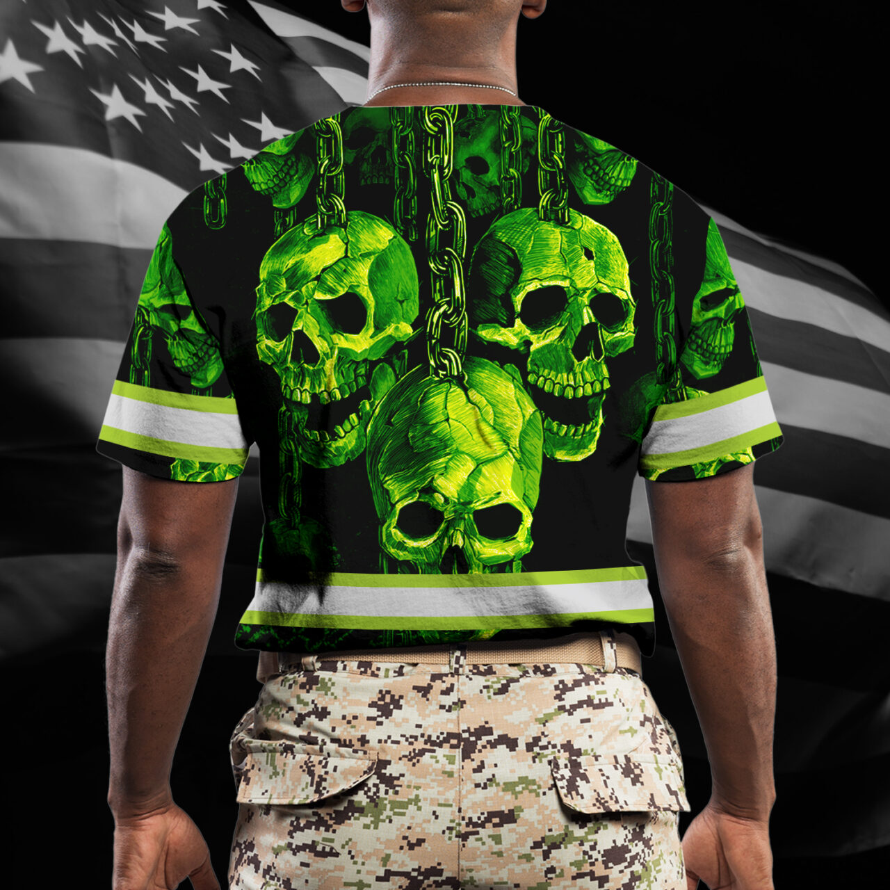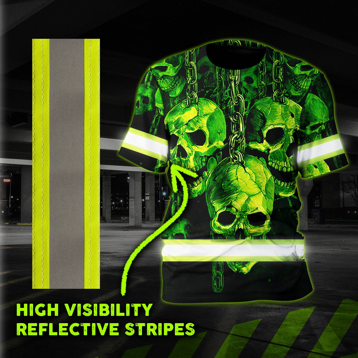 Hi Vis Shirt Reflective Tapes Green Neon Skulls Hanging On Chain Safety