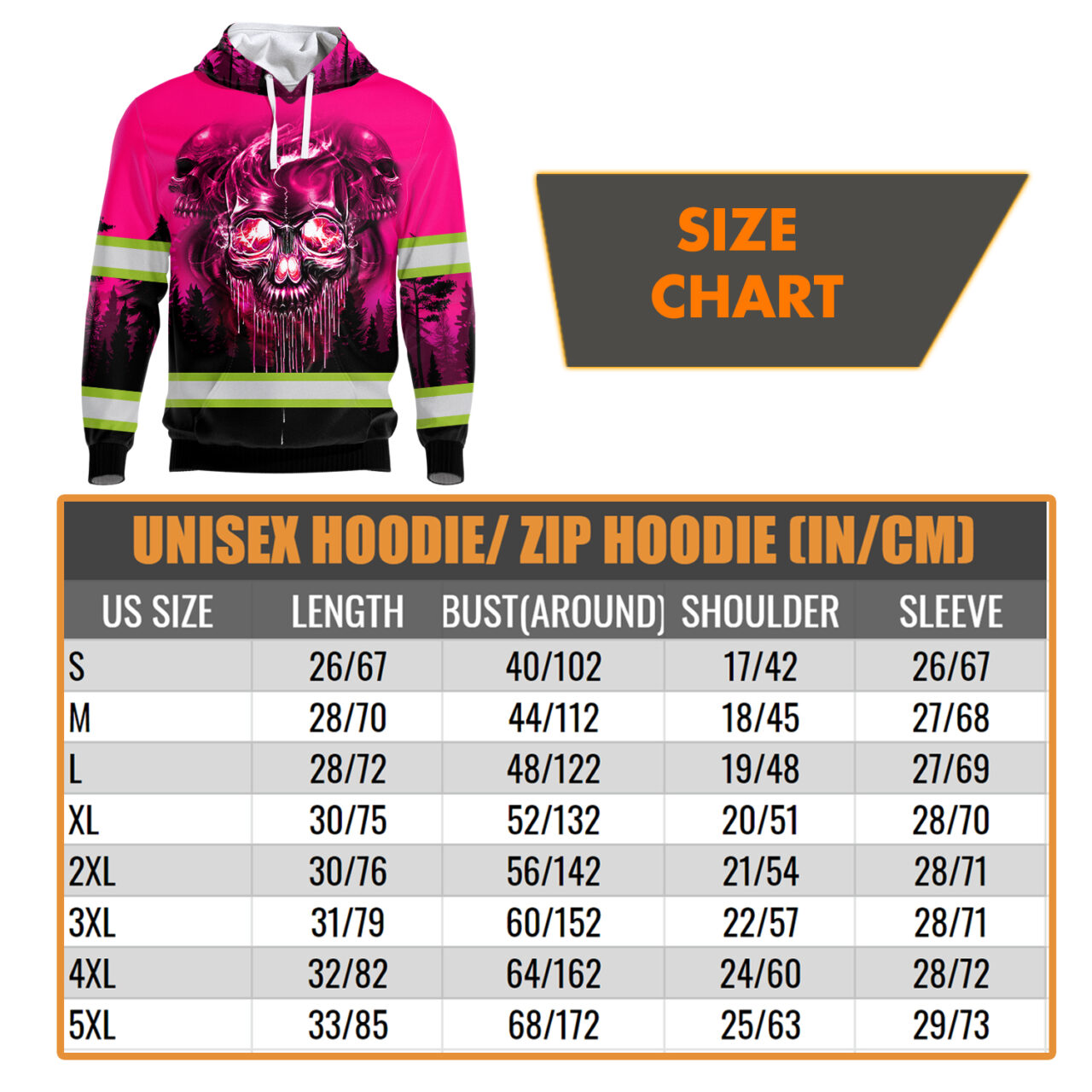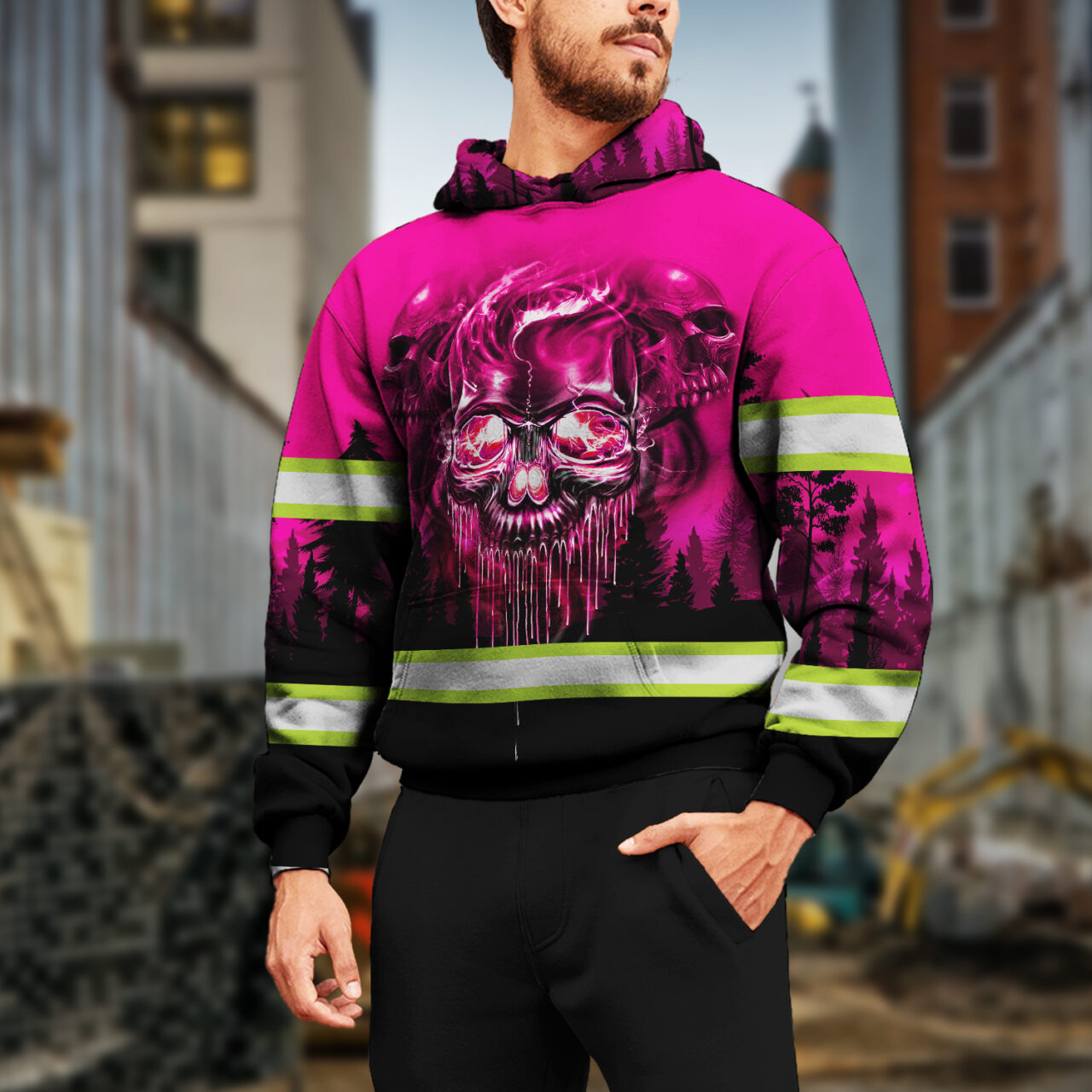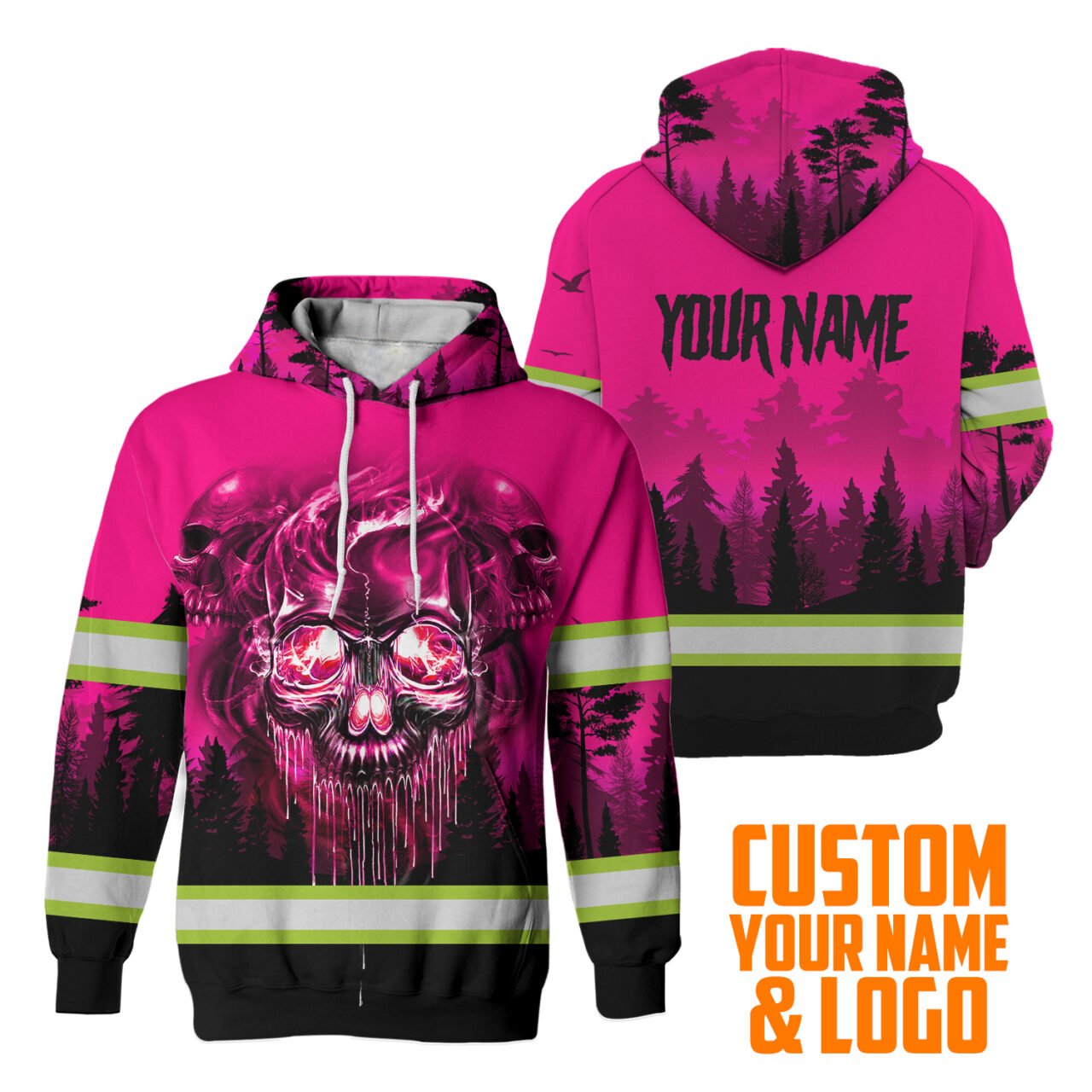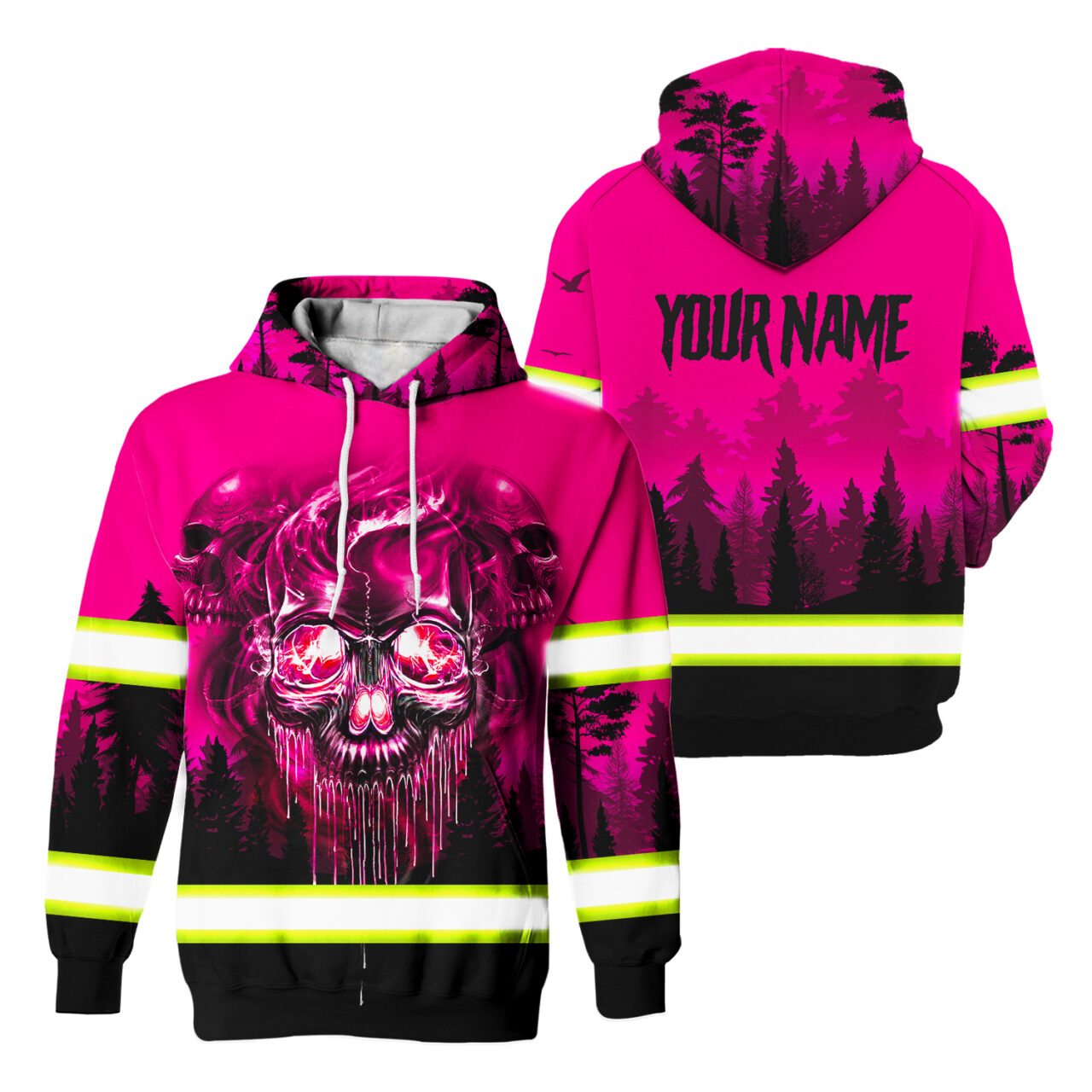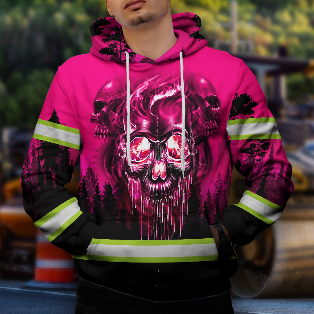 Pink Reflective Hoodie Skull Pink Neon Workwear Safety For Women Men Worker, Trucker, Operator, Skull Lovers, Drivers, Runners