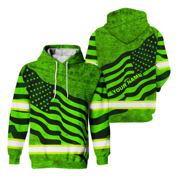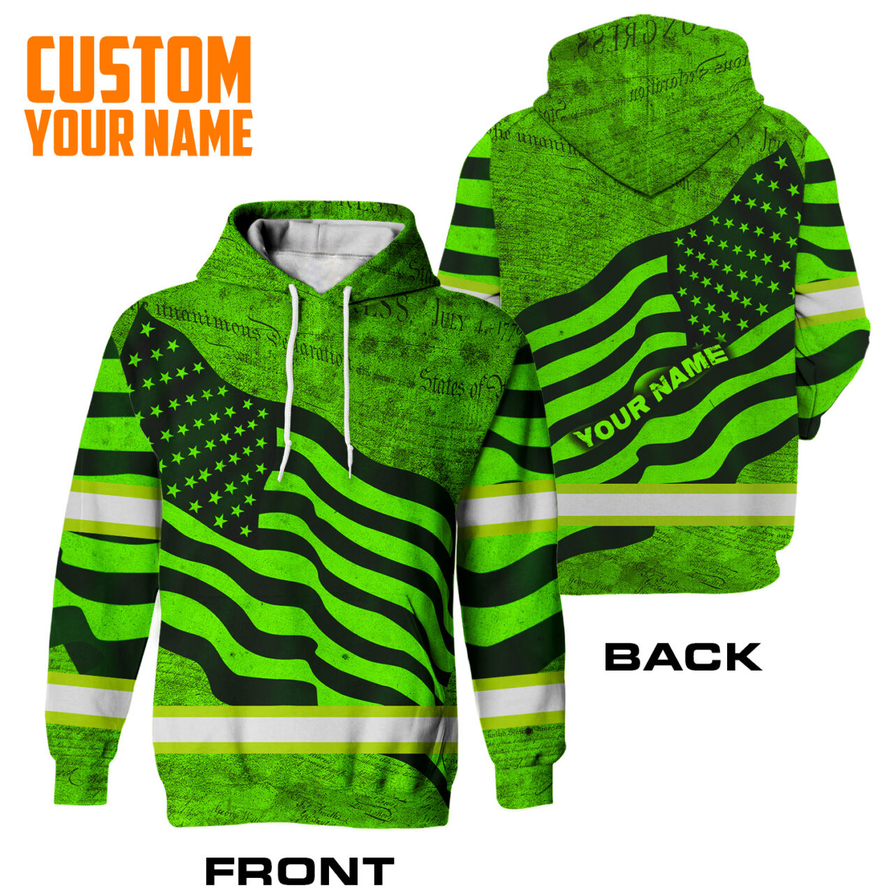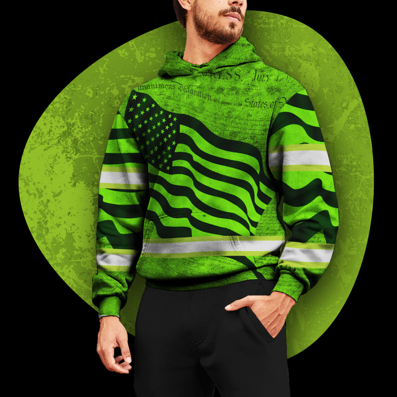 Reflective Safety Hoodie Green Black Neon Independence USA Flag Safety Workwear For Runners, Cyclists