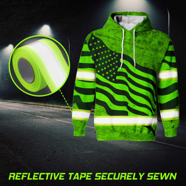Reflective Safety Hoodie Green Black Neon Independence USA Flag Safety Workwear For Runners, Cyclists quantity