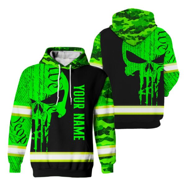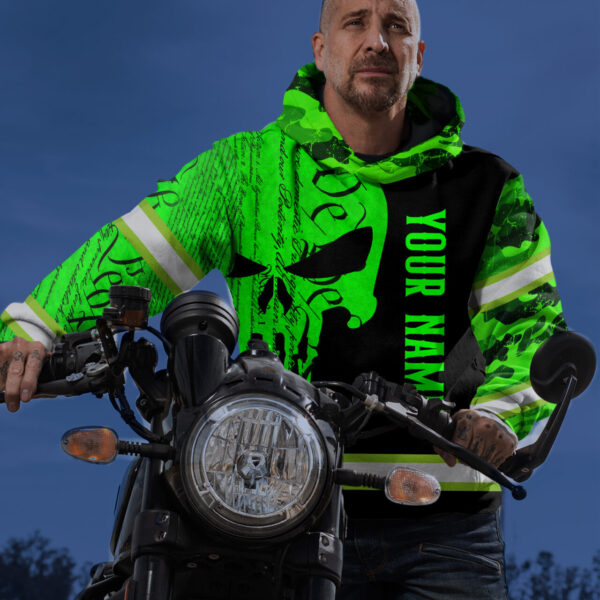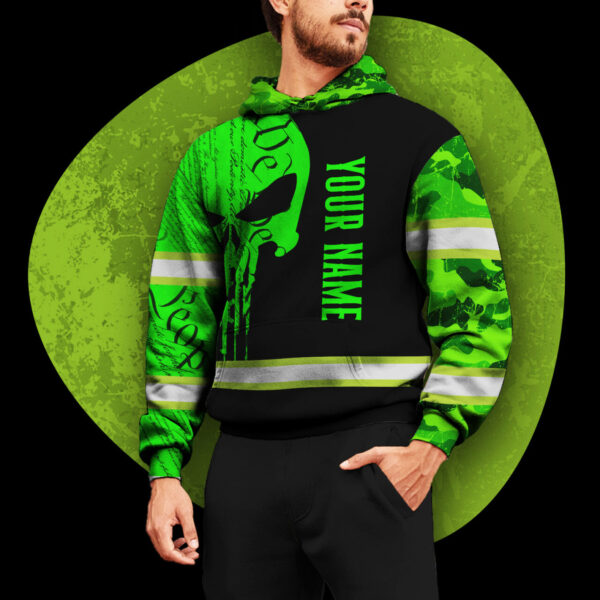 Reflective Safety Hoodie Green Camo Neon Skull Gun USA Flag Safety Workwear For Runners, Cyclists, Patriotic