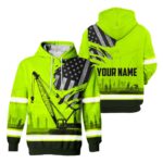 Green Hoodies Mens Reflective Job Green Neon Crane Operator Custom Name Safety Workwear For Operator, Workers, Runners, Cyclists, Patriotic