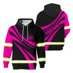Hi Vis Hoodie Reflective Tapes Uniform Pink Neon Black Custom Logo And Name Safety Workwear For Workers, Runners, Cyclists, Patriotic