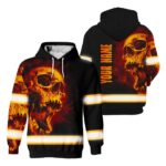 Reflective Safety Hoodie Orange Neon Skull Custom Name Safety Workwear For Runners, Cyclists, Skull Lover