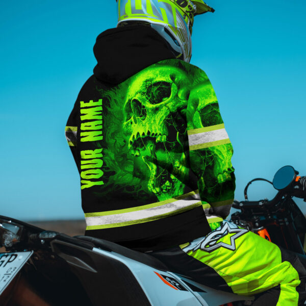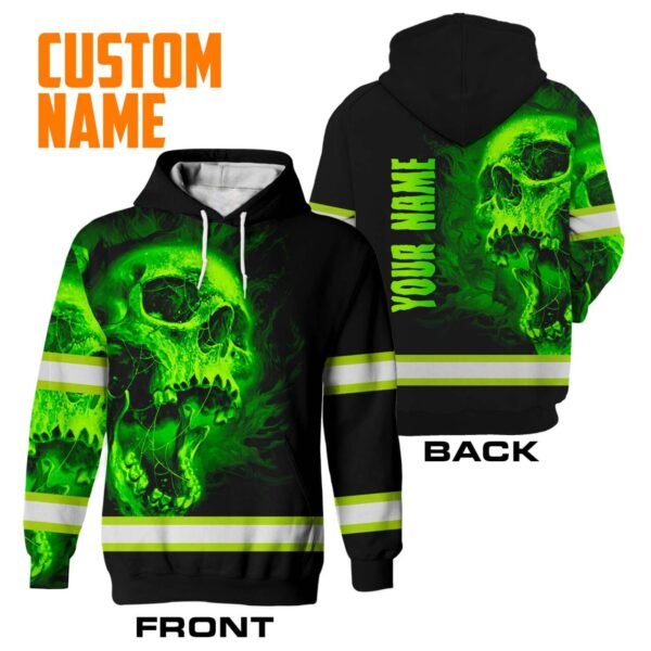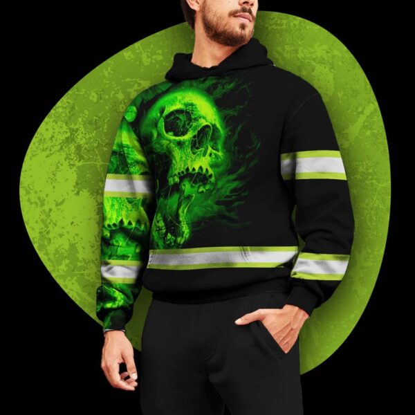 Reflective Safety Hoodie Green Neon Skull Custom Name Safety Workwear For Runners, Cyclists, Skull Lover