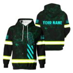 Be the first to review “Reflective Safety Hoodie Mint Neon US Flag Ripping Off Custom Name Safety Workwear For Runners, Cyclists, Patriotic”