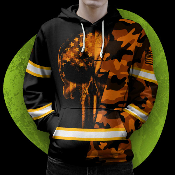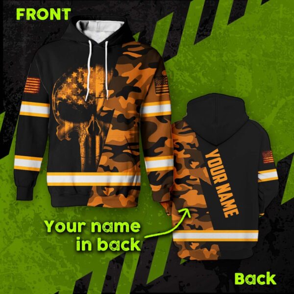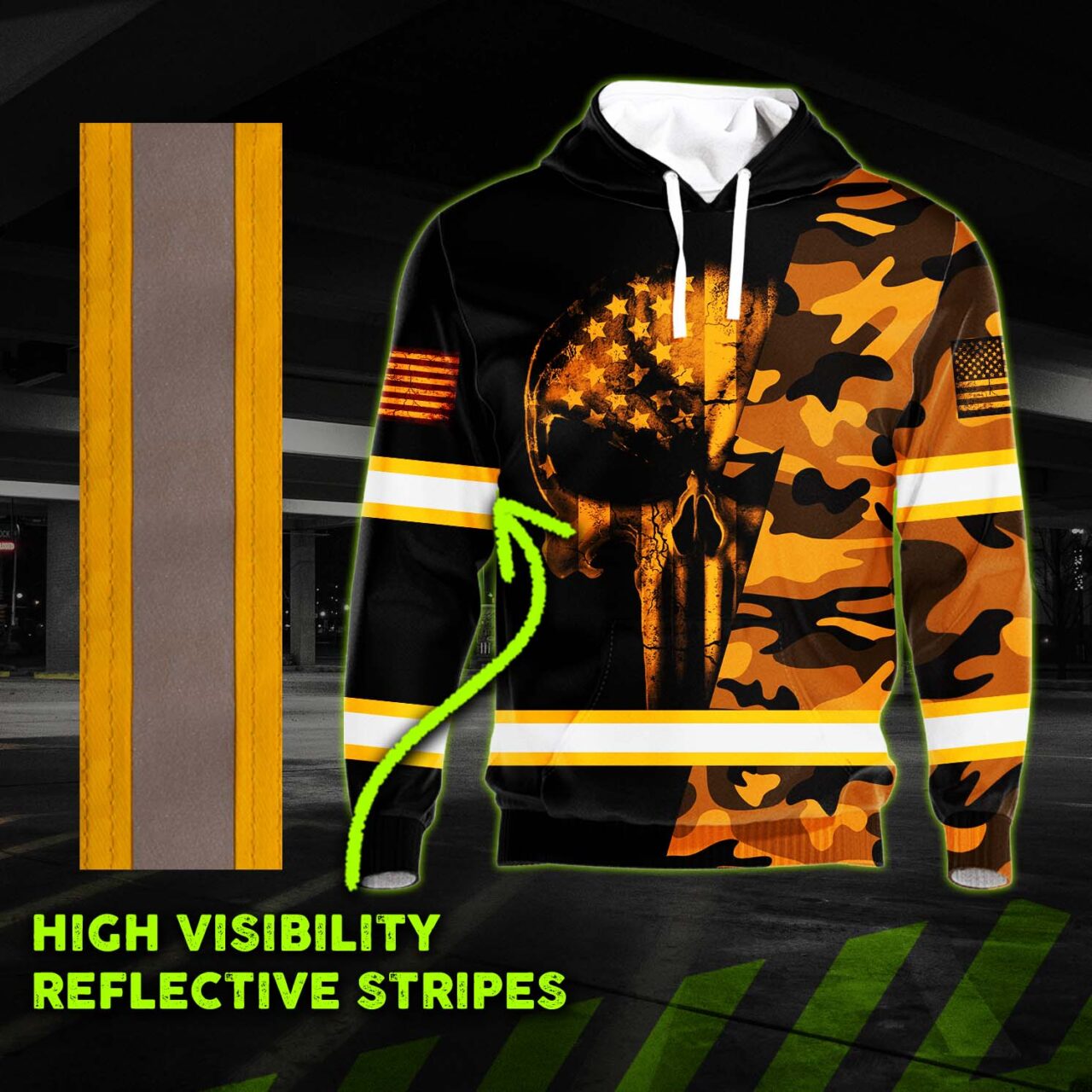 Reflective Safety Hoodie Skull US Flag Camo Orange Neon Custom Name For Skull Lover