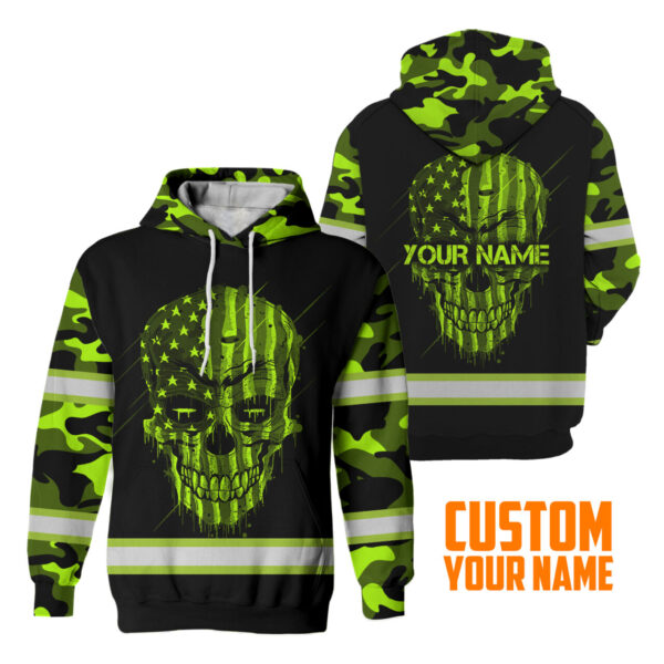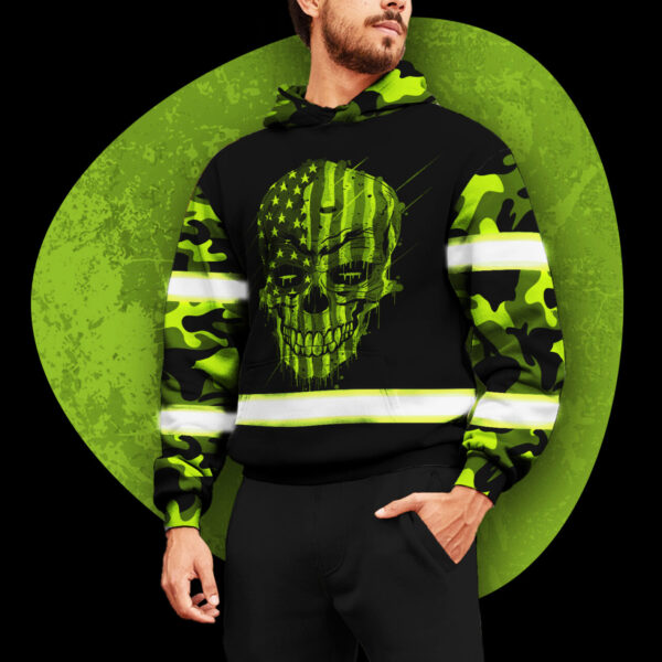 Safety Hoodies For Men Skull US Flag Camo Neon Custom Name Safety Workwear For Runners, Cyclists, Trucker, Operator, Patriotic