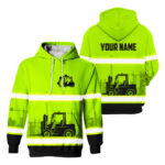Hi Vis Hoodie Reflective Tapes Green Forklift Operator Custom Name Safety Workwear For Workers, Runners, Cyclists