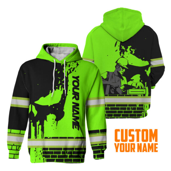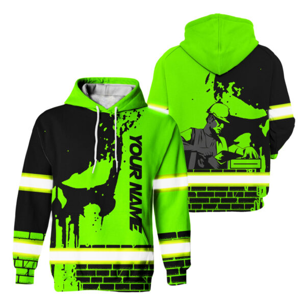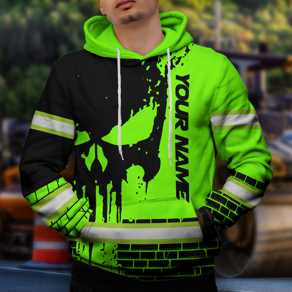 Safety Hoodies For Men Tapes Green Skull Bricklayer Custom Name Safety Workwear For Runners, Cyclists
