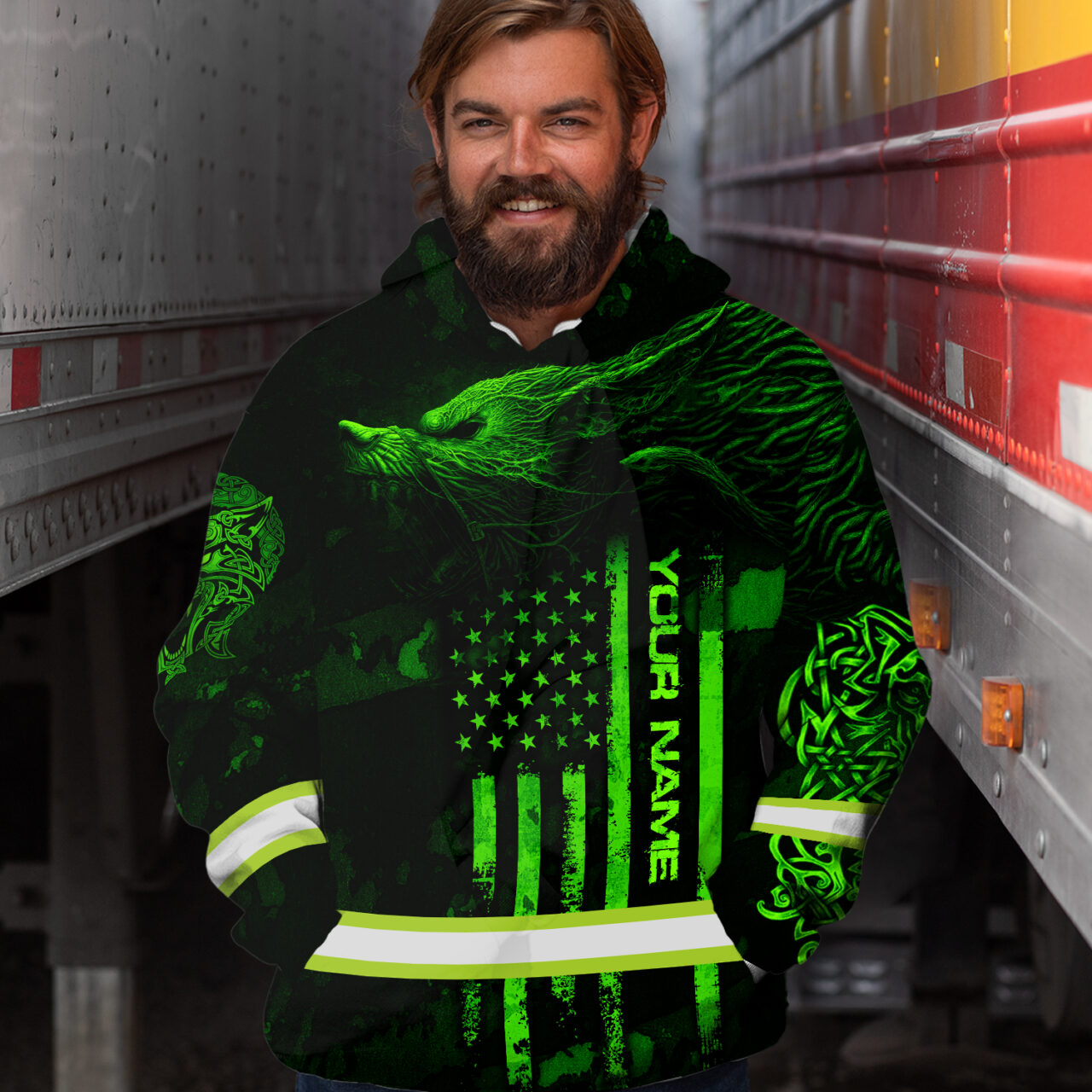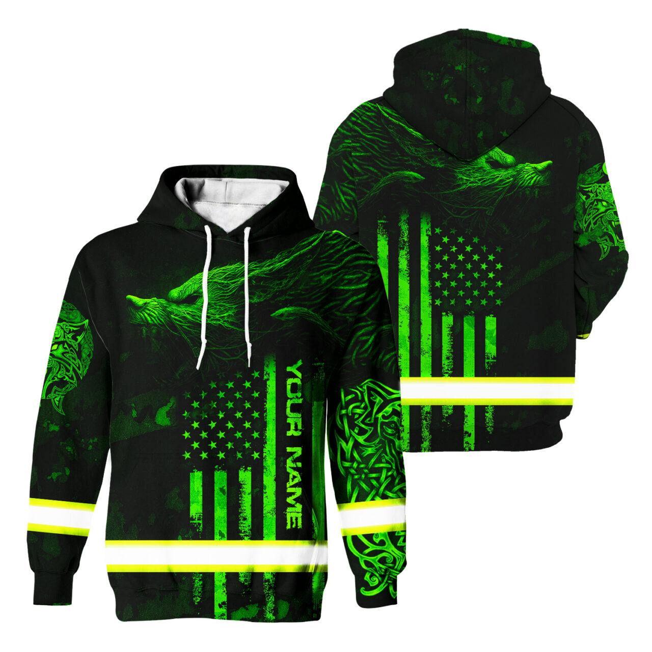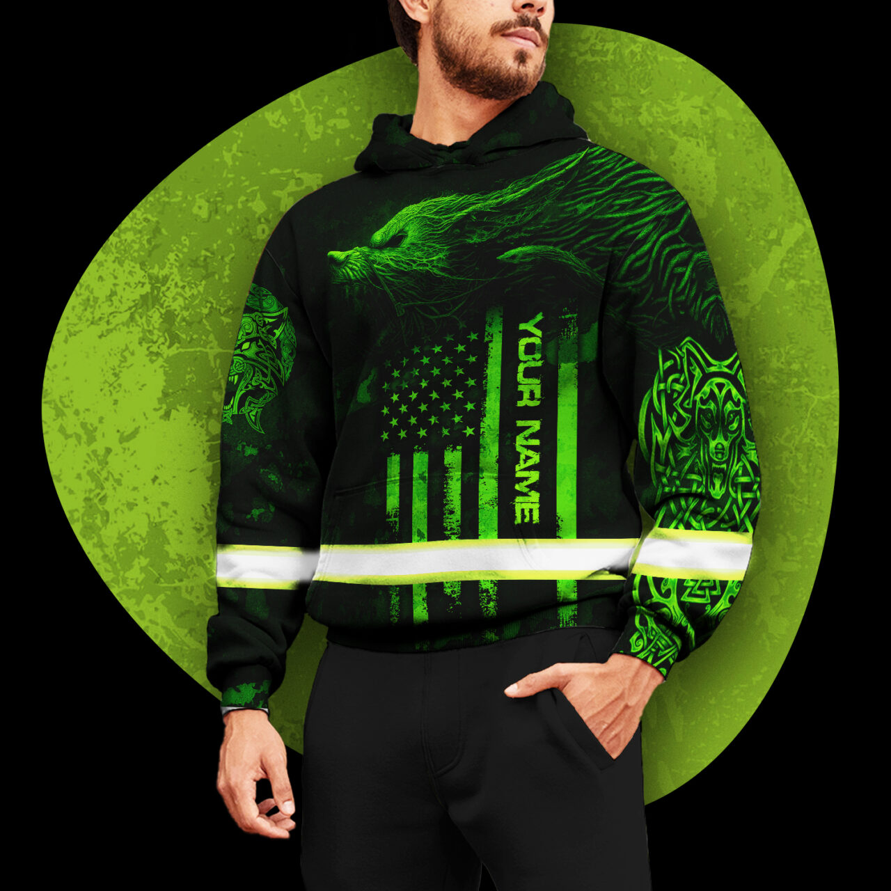 Safety Hoodies For Men Tapes Green Viking Custom Name Safety Workwear For Workers, Runners, Cyclists
