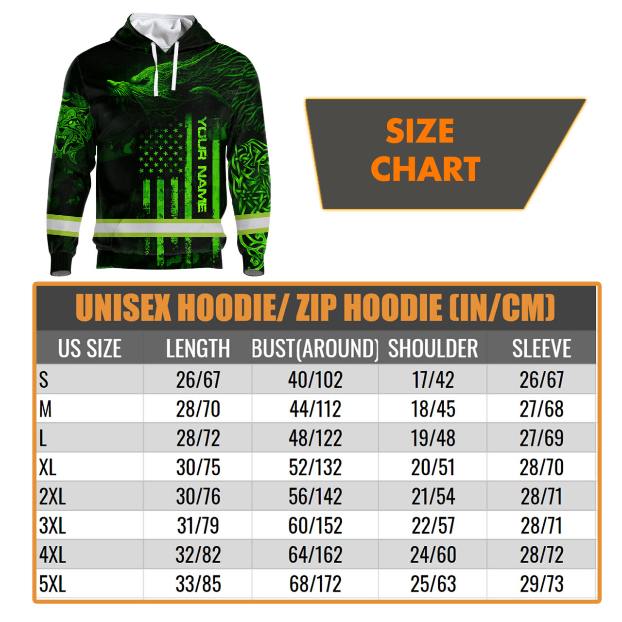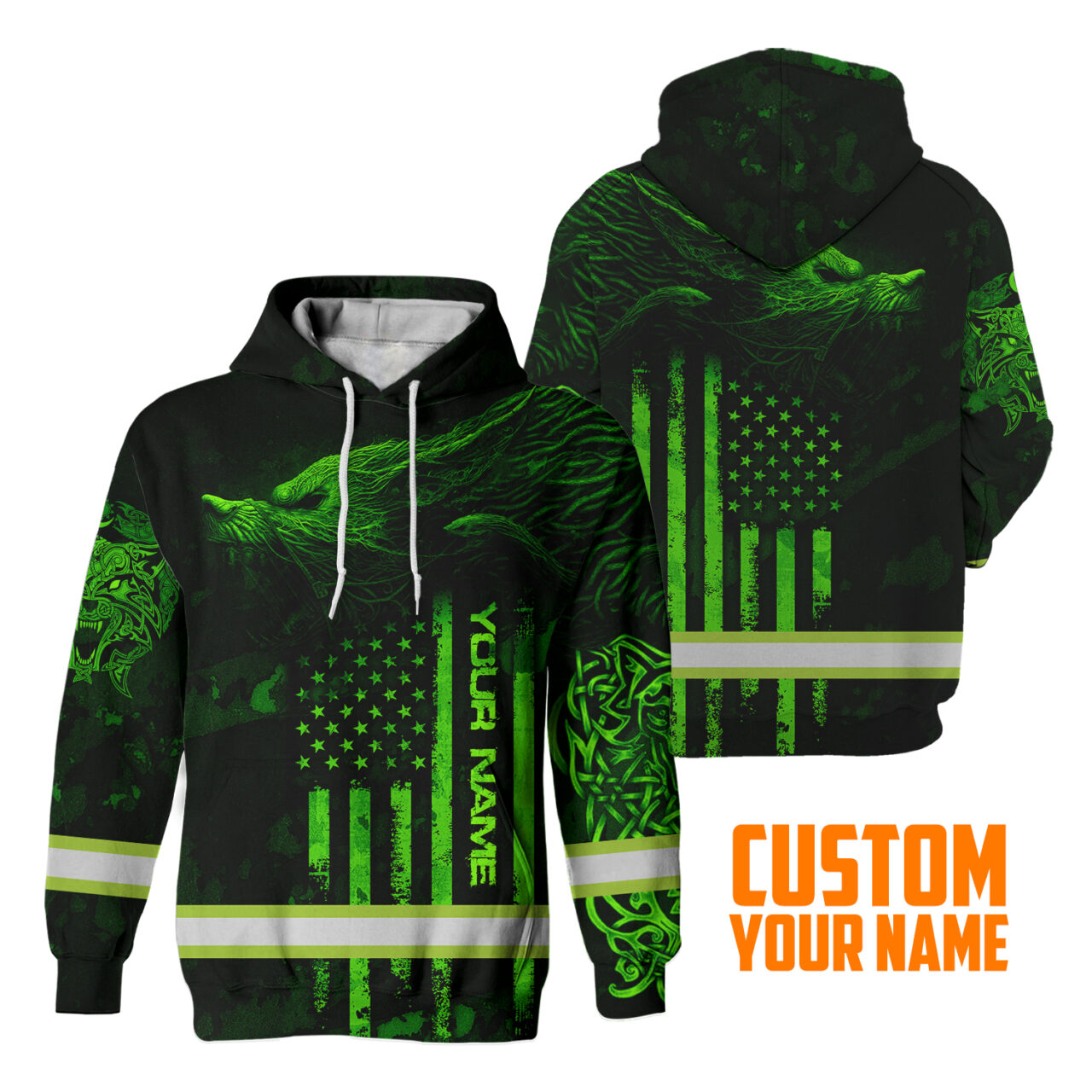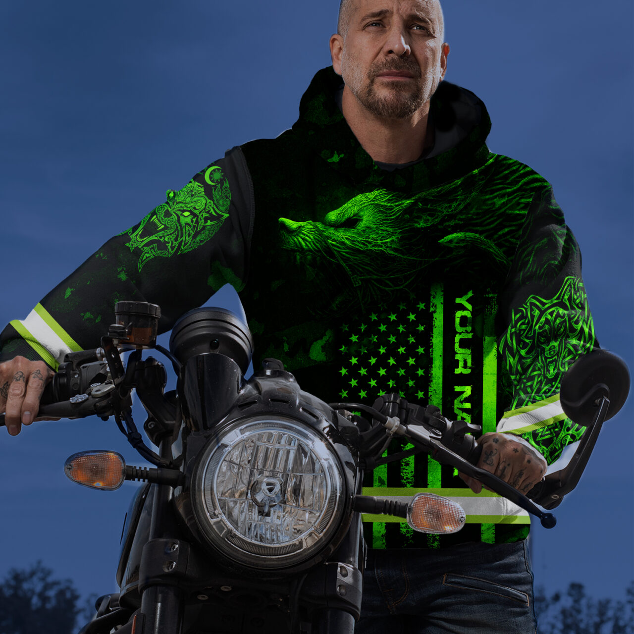 Safety Hoodies For Men Tapes Green Viking Custom Name Safety Workwear For Workers, Runners, Cyclists