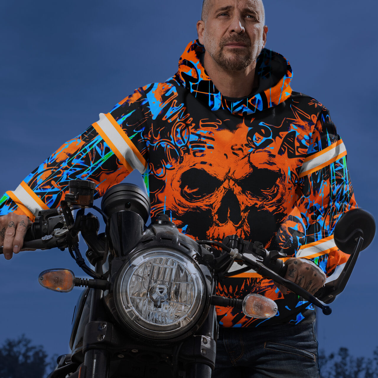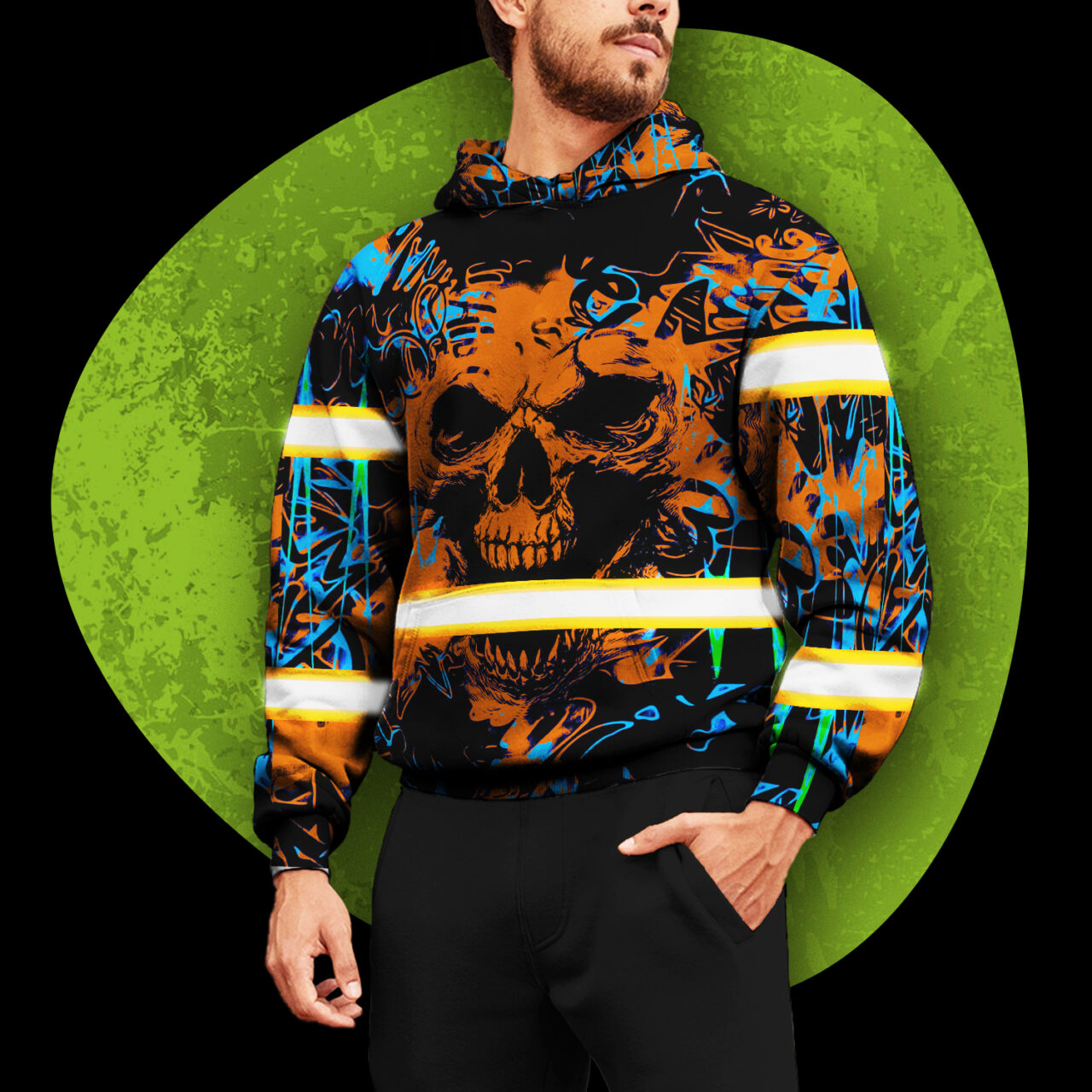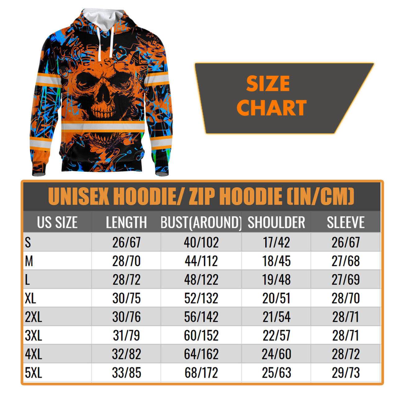 Be the first to review “Safety Hoodies For Men Tapes Orange Neon Skull Safety Workwear For Workers, Runners, Cyclists”