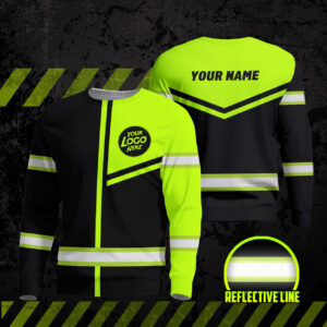 Hi Vis Shirt Uniform Reflective Black And Green Neon Custom Name And Logo Safety Workwear
