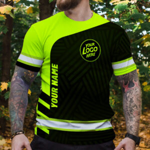 Hi Vis Shirt Uniform Reflective Black Green Neon Custom Name And Logo Safety Workwear