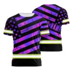 • Hi Vis Shirt Reflective Tapes Hologram Violet US Flag Custom Name