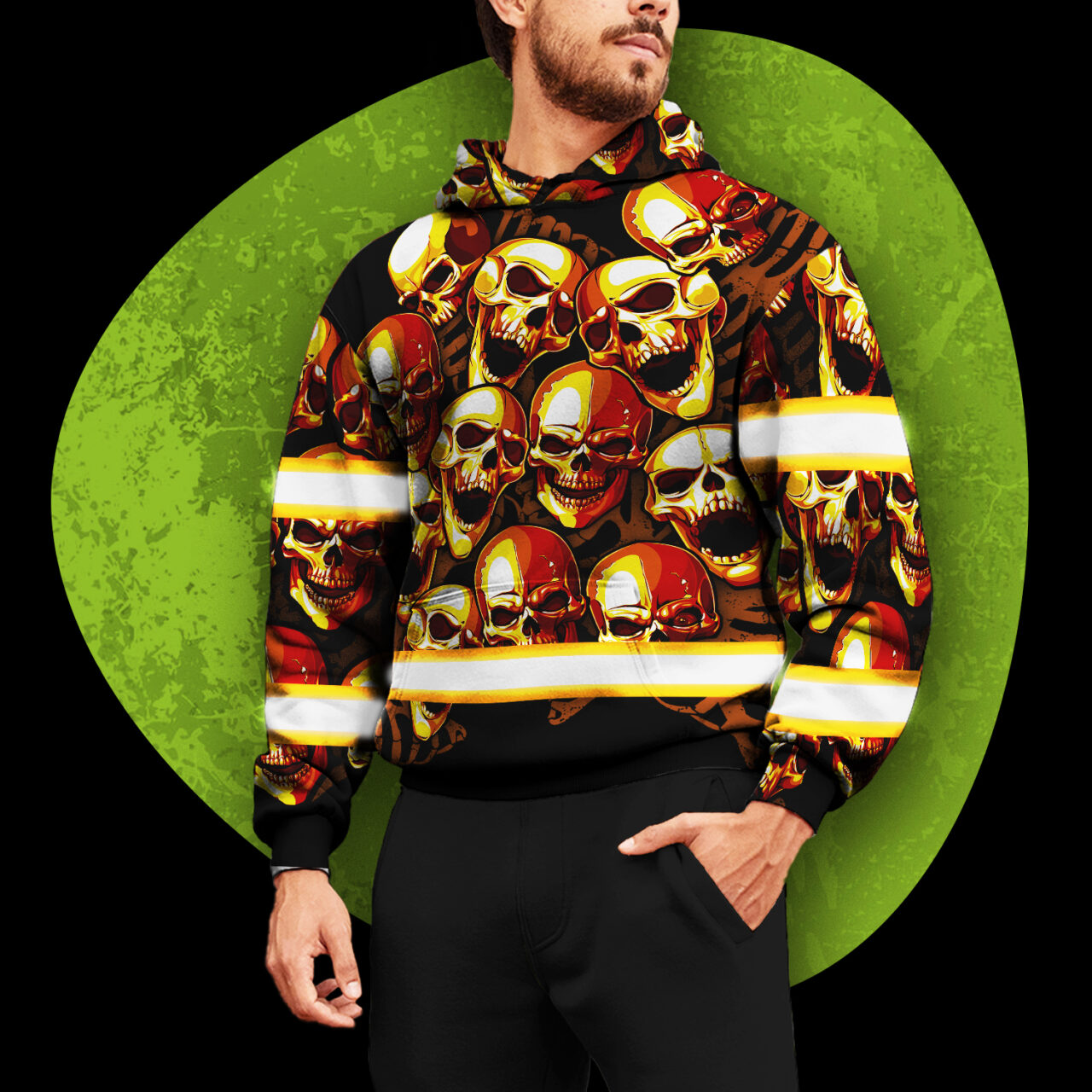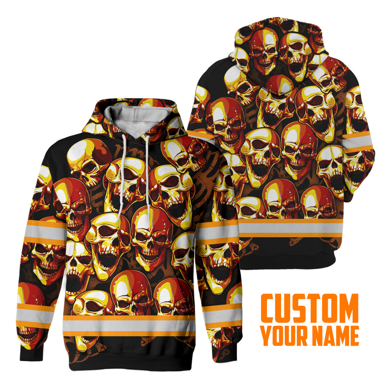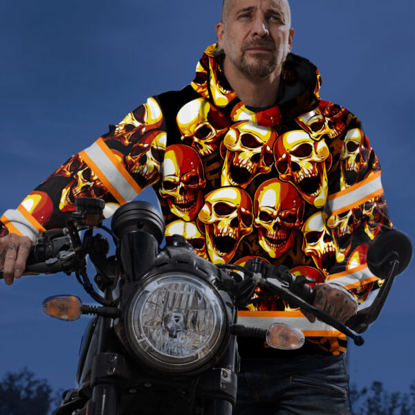 Skull Reflective Hi Vis Hoodies – Orange Neon Safety Workwear Unisex