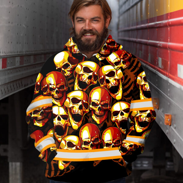 Skull Reflective Hi Vis Hoodies - Orange Neon Safety Workwear Unisex quantity