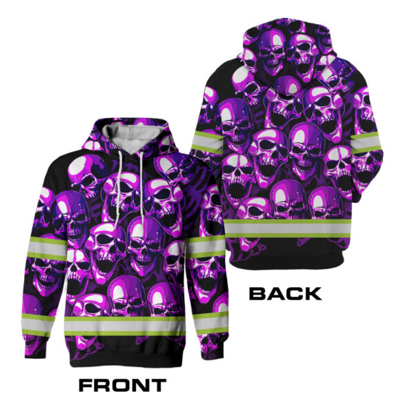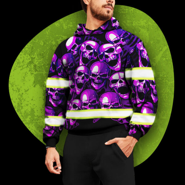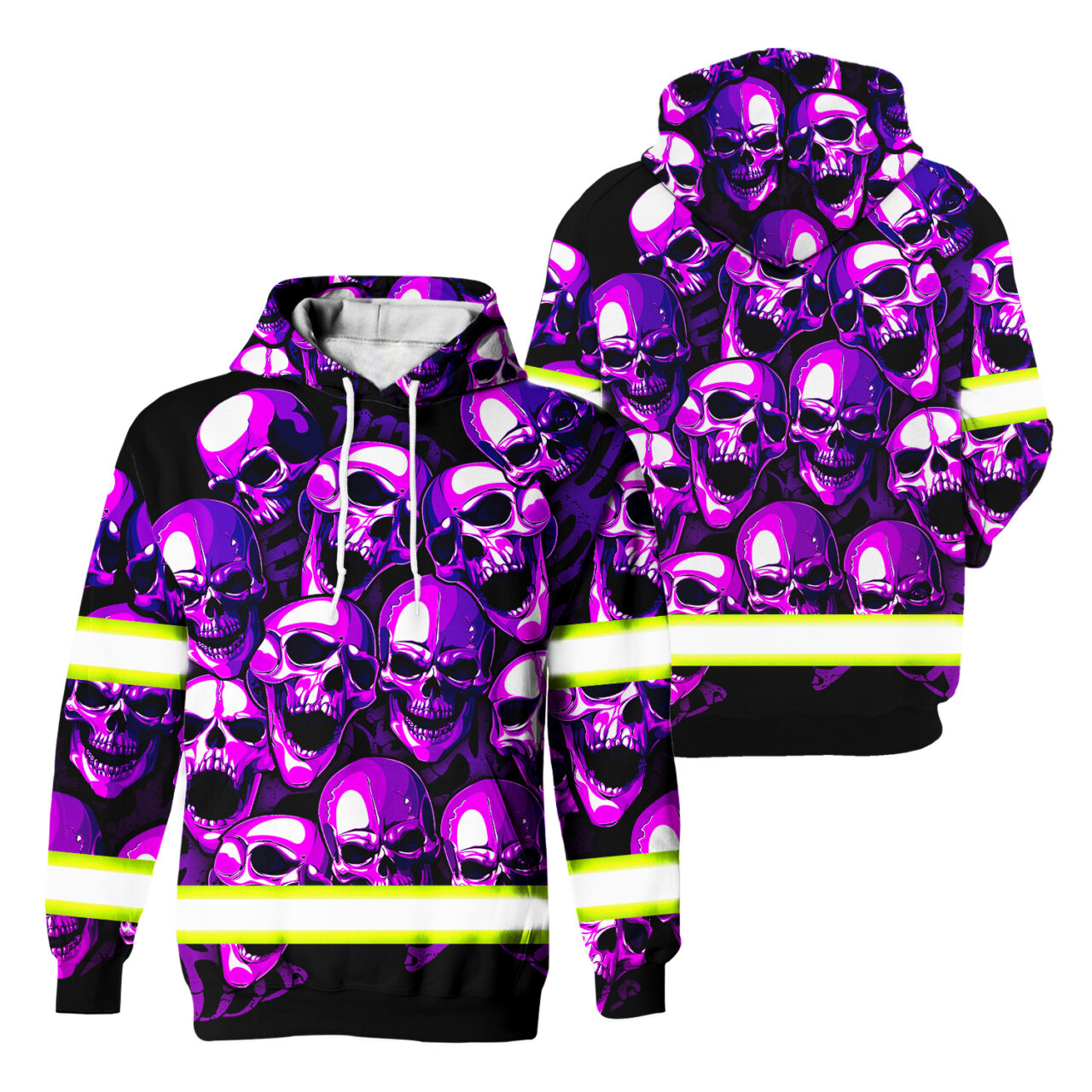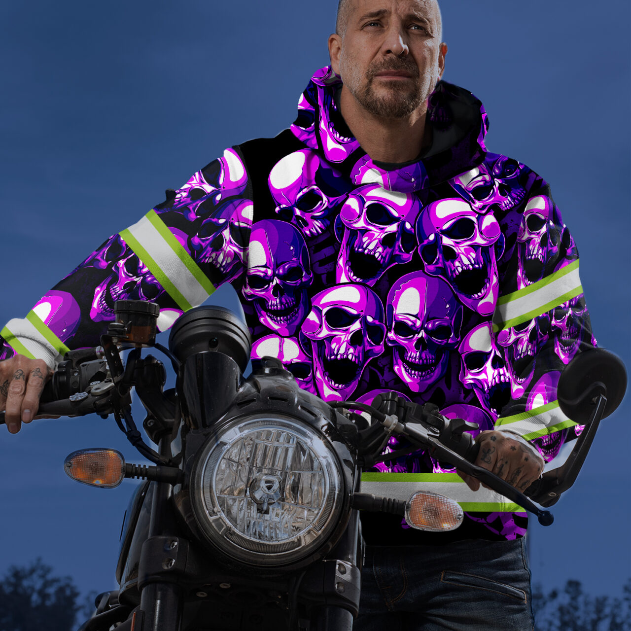 Skull Reflective Hi Vis Hoodies – Violet Neon Safety Workwear Unisex