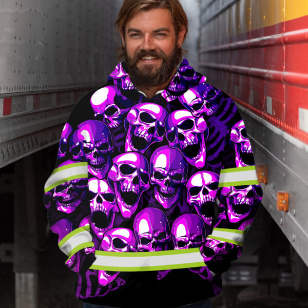 Skull Reflective Hi Vis Hoodies - Violet Neon Safety Workwear Unisex quantity