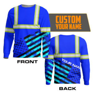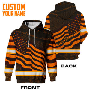 Hi Vis Reflective US Flag Custom Name Hoodie Safety Workwear