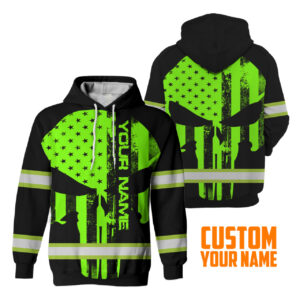 Hi Vis Hoodie Reflective Scratch Green Neon US Flag Custom Name Safety Workwear